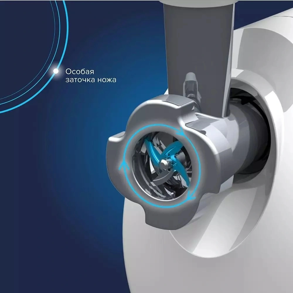 Мясорубка мощностью 1500 Вт; производительность 1.66 кг/мин; система реверса.