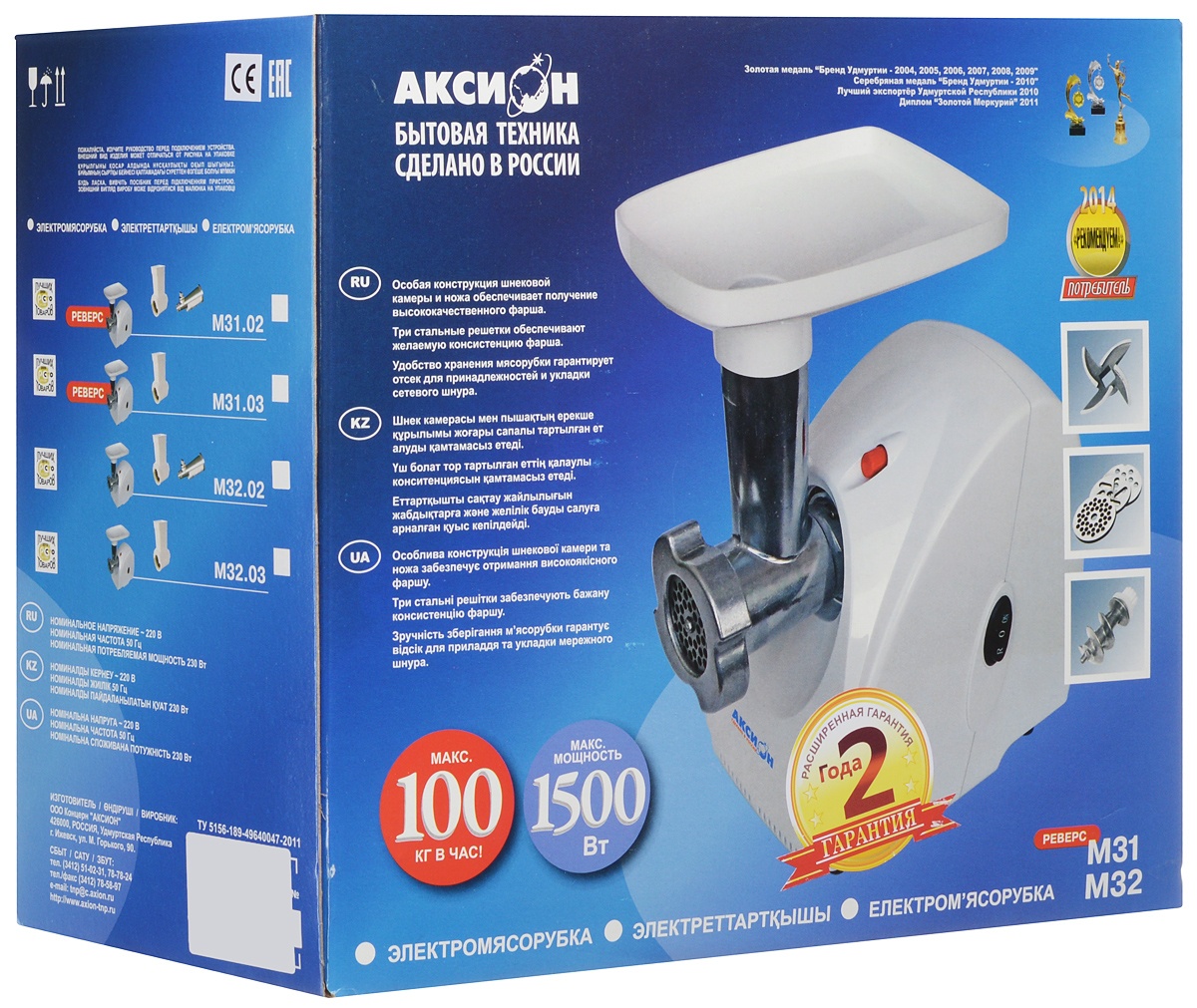 Описание товара Мясорубка Аксион М 32.03 Белый