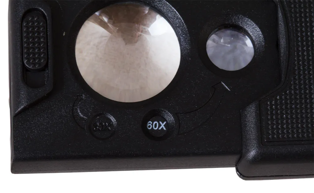 Складная лупа Levenhuk Zeno Gem M13 – мощный увеличительный прибор, ориентированный на коллекционеров, часовых мастеров и ювелиров. Лупа отлично подходит для решения сложных профессиональных задач и пригодится в домашних делах. Она имеет встроенную подсветку двух типов и дает три фиксированных увеличения – 30х, 45х и 60х. Линзы сделаны из оптического пластика, который передает четкое и контрастное изображение и не боится ударов и падений с небольшой высоты. Складную лупу удобно носить с собой на работу или в магазины, брать в длительные поездки и на встречи с клиентами. Прочный пластиковый корпус надежно защищает оптику от случайных повреждений в пути. Светодиодная подсветка предназначена для работы с мелкими предметами в условиях плохой освещенности. Система освещения включает и ультрафиолетовую лампочку, которая нужна для оценки подлинности купюр. Переключаться между подсветками можно при помощи небольшого рычажка на корпусе.