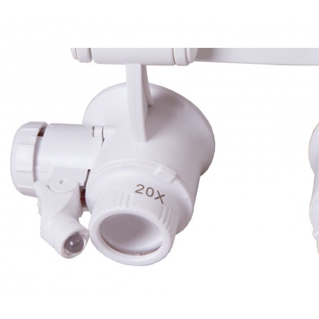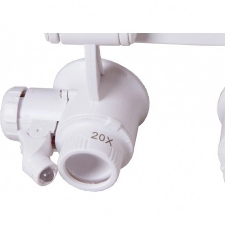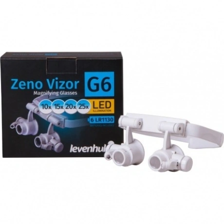 Лупа-очки Levenhuk Zeno Vizor G6 – это бинокулярная лупа со встроенной подсветкой, регулируемым по длине головным креплением и сменными линзами. В комплект поставки включены четыре набора парных линз разного увеличения. Благодаря им оптика легко настраивается под решение любых задач. Эта лупа будет полезна при работе с часовыми механизмами, в ювелирном деле, на промышленном производстве. С ее помощью можно проводить контроль сварных швов, проверять качество выполненных точных работ, оценивать предметы искусства. Лупа-очки Levenhuk Zeno Vizor G6 снабжена головным креплением, благодаря которому руки всегда остаются свободными. Длину крепления можно регулировать. Каждый окуляр снабжен ярким светодиодом – подсветка яркая и дает равномерное освещение. Окуляры можно отворачивать наверх – это позволяет осмотреть рабочую область невооруженным глазом. Угол наклона подсветки тоже регулируется.