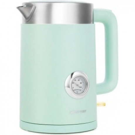 До сих пор не могу налюбоваться его красотой и аккуратностью. В мою оливковую кухню невероятно вписывается своим тонким мятным цветом. Очень удобный носик, не проливается. Большая классная ручка, удобно держать. Шикарная крышка, которая без нажатия на кнопку никогда сама не откроется. Стальной ободок дополняет сам чайник и вид его становится намного стильнее. Термометр работает и безумно удобно для того, чтобы отключить чайник для заваривания зеленого чая или просто подогрева до нужной температуры. НЕВЕРОЯТНО тихий!!! Такого тихого чайника я никогда не встречала! первый раз когда кипятила воду даже засомневалась работает ли он. Очень тихий, совсем не заметный на фоне общения или разговора по телефону, например.