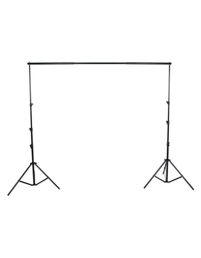 Система установки фона, состоящая из двух штативных телескопических стоек и перекладины для подвешивания фона 2,1x3м. Максимальная высота вертикальных стоек – 2.1 м Состоят из 4 секций Максимальнsq диаметр трубы 26 мм