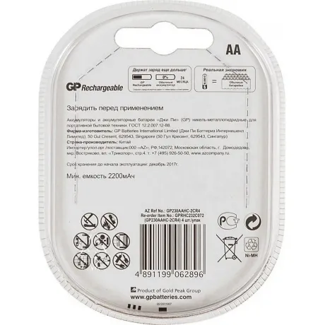 Отзывы о товаре Аккумулятор GP 230AAHC AA NiMH 2300mAh (4шт)