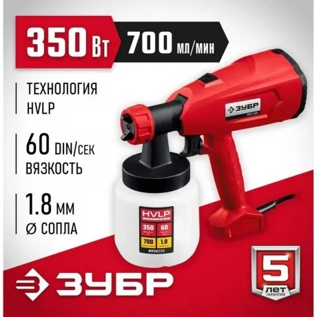 Описание товара Краскопульт Зубр КПЭ-350 350Вт бак:800мл 700мл/мин