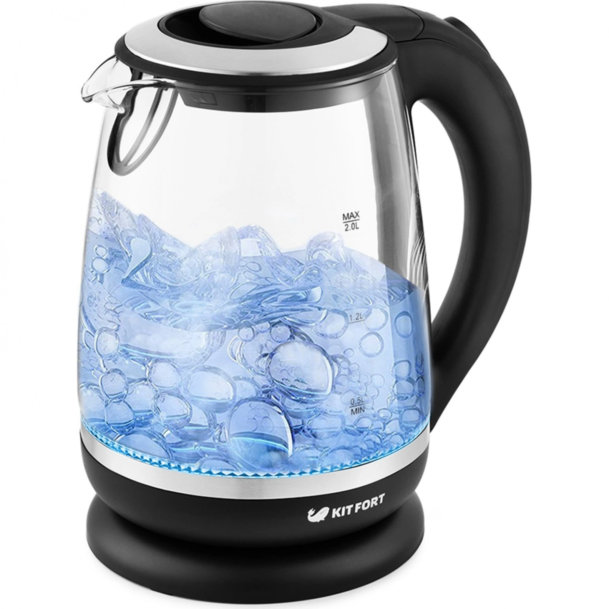 Хотелось давно приобрести чайник с подсветкой при нагревании. И вот мечта осуществилась, приобрели чайник Kitfort KT-655. Чайник понравился по внешнему виду, объёму и нагреванию. Его можно отнести к категории бесшумных. Подсветка только синяя. Со своей задачей чайник справляется хорошо. Объём два литра, то что нужно для семьи. Чайником довольны.