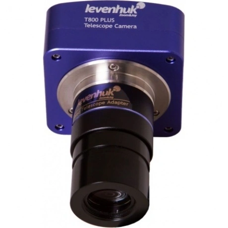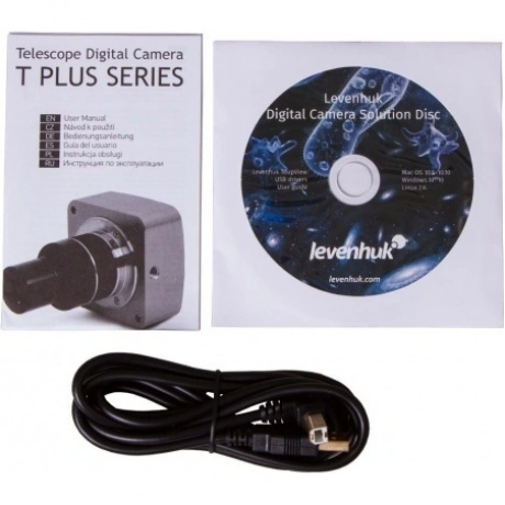 Цифровая камера Levenhuk T800 PLUS – «старшая» и самая мощная модель серии Levenhuk T PLUS. Это 8-мегапиксельная камера, которая позволяет получать снимки с разрешением до 3264x2448 пикселей. Вы сможете рассматривать ночное небо и крупные астрономические объекты с невероятной детализацией. Камера позволяет фотографировать планеты, Луну, туманности и звездные скопления. С ее помощью вы сможете снять увлекательный видеоролик о космосе или провести онлайн-трансляцию своих наблюдений. Камера работает с любыми телескопами любых производителей. Установить ее можно только в фокусер 1,25, адаптер включен в комплект поставки. Камера работает при подключенном компьютере, для подсоединения используется стандартный USB-кабель. Она не требует источника питания и подзаряжается напрямую от компьютера. Для работы с камерой используется специальное программное обеспечение (диск в комплекте). Оно позволяет обрабатывать кадры: изменять размер, регулировать яркость и контрастность, сохранять снимки и видеоролики на диск.