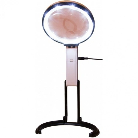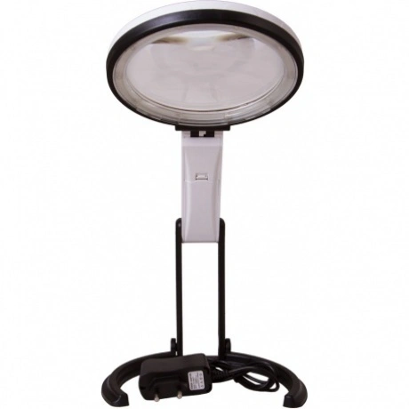 Настольная лупа Levenhuk Zeno Desk D7 отличается необычной конструкцией. Складной штатив в три шага позволяет превратить ее из настольной модели в более компактную лупу на ручке. Поэтому Levenhuk Zeno Desk D7 подходит и для длительной работы, и для кратковременного изучения мелких предметов. Она отлично впишется в домашний арсенал полезных оптических приборов и поможет в чтении, творческой работе, ремонте мелких предметов. Подсветка лупы состоит из 10 ярких светодиодов, которые расположены вокруг бифокальной линзы. Свет от них падает равномерно, создавая минимальное количество теней. Подсветка работает от батареек или от сети.