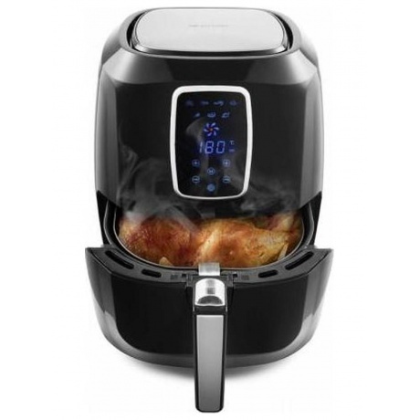 Современный аэрогриль Kitfort KT-2208 замечателен не только стильным дизайном. Он может использоваться как аэрогриль, а также как аэрофритюрница и духовка, и позволяет готовить большинство продуктов без добавления масла. При помощи системы циркуляции горячего воздуха продукты равномерно обжариваются со всех сторон и получаются нежными внутри и с хрустящей корочкой снаружи. Аэрогриль оснащен электронным управлением, он имеет 7 автоматических программ и дисплей. Продукты готовятся в специальной корзине, которая вставлена в поддон с антипригарным покрытием. По окончании приготовления аэрогриль автоматически отключается. Поддон с корзиной легко вынимаются и моются.