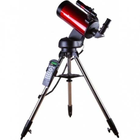 Телескоп Sky-Watcher Star Discovery MAK127 SynScan GOTO – компактный и мощный оптический прибор, который хорошо подходит для изучения планет Солнечной системы и Луны. В него можно наблюдать фазы Венеры и Меркурия, изучать Большое красное пятно на Юпитере, детально рассматривать спутники Сатурна и знаменитую щель Кассини. Из объектов дальнего космоса для наблюдений доступны двойные и переменные звезды, туманности и галактики. Телескоп прекрасно подойдет для загородных наблюдений. Длина его трубы составляет всего 33 см, поэтому с телескопом удобно путешествовать. При этом фокусное расстояние достигает 1 500 мм, а высококачественная оптика передает четкую картинку даже на максимально возможном увеличении. Так как в комплект поставки включено диагональное зеркало 90°, телескоп можно использовать и для наземных наблюдений – картинка будет правильно ориентированной (неперевернутой). Телескоп установлен на современную компьютеризированную монтировку. Это одноперьевая азимутальная монтировка с пультом управления SynScan, в память которого записаны координаты 42 000 астрономических объектов. Телескоп способен самостоятельно навестись на любой из них. Есть возможность и ручного управления, при этом настройки автоматического позиционирования полностью сохраняются благодаря технологии свободного наведения Freedom Find. В любой момент компьютер может взять управление на себя и продолжить ведение объекта по небосклону. Кроме того, встроенный модуль Wi-Fi позволяет управлять телескопом удаленно – при помощи смартфона или планшета. Нужно лишь установить бесплатное приложение «SynScan» на мобильное устройство и настроить связь с телескопом. После этого все функции системы SynScan будут доступны прямо в мобильном устройстве, а для автонаведения будет достаточно просто коснуться экрана. Приложение бесплатно и загружается из официальных магазинов App Store и Google Play. В комплект поставки включены основные оптические аксессуары и кабели для системы автонаведения. Стальная тренога снабжена лотком для аксессуаров и регулируется по высоте.