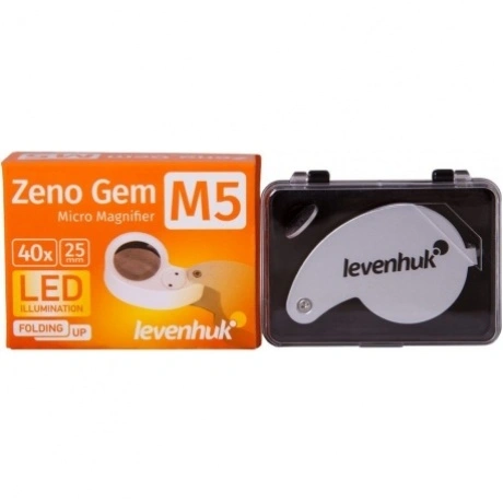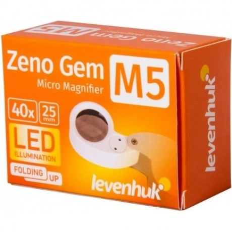Компактная лупа Levenhuk Zeno Gem M5 – мощный оптический инструмент на каждый день. Лупа дает 40-кратное увеличение и позволяет изучать крохотные трещинки на предметах и одежде, читать мелко набранный текст, рассматривать детали фотографий и иллюстраций. Лупа подойдет для домашнего использования и пригодится в дороге. Благодаря малым габаритам и весу ее удобно брать с собой в поездки. Лупа имеет встроенную подсветку. Для освещения рабочей области используются два ярких светодиода, расположенные рядом с линзой. Складная конструкция позволяет надежно защищать линзу во время путешествий.