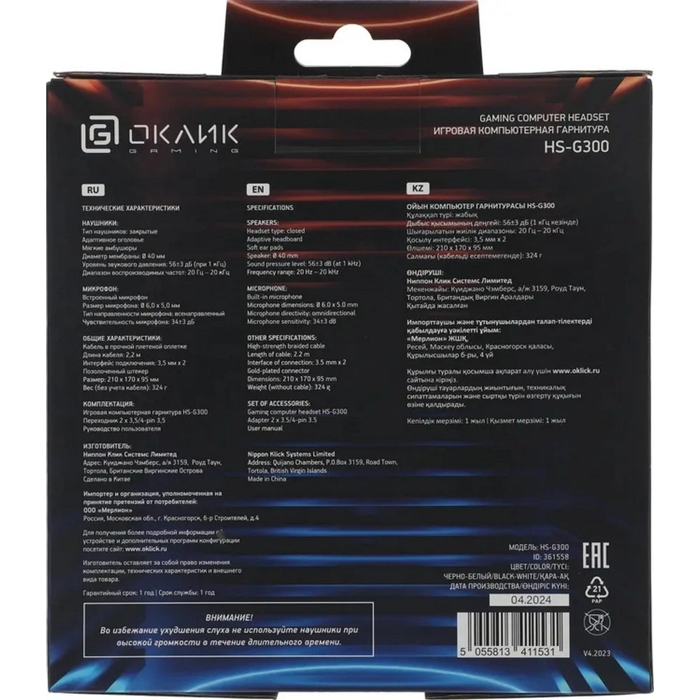 Описание товара Наушники Oklick HS-G300 ARMAGEDDON белый/черный (AH-V1W)