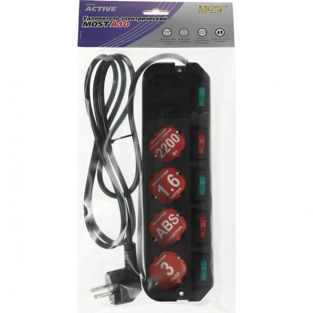 Сетевой фильтр Most A10 1.6м (6 розеток) черный в Санкт-Петербурге