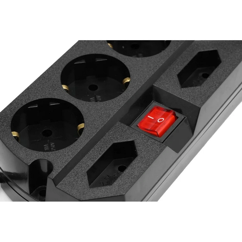 Данная модель удлинителя/сетевого фильтра оснащена десятью розетками типа F (евророзетка), что позволяет подключать одновременно несколько устройств. Шесть из них оснащены заземлением, что обеспечивает дополнительную защиту и безопасность использования.