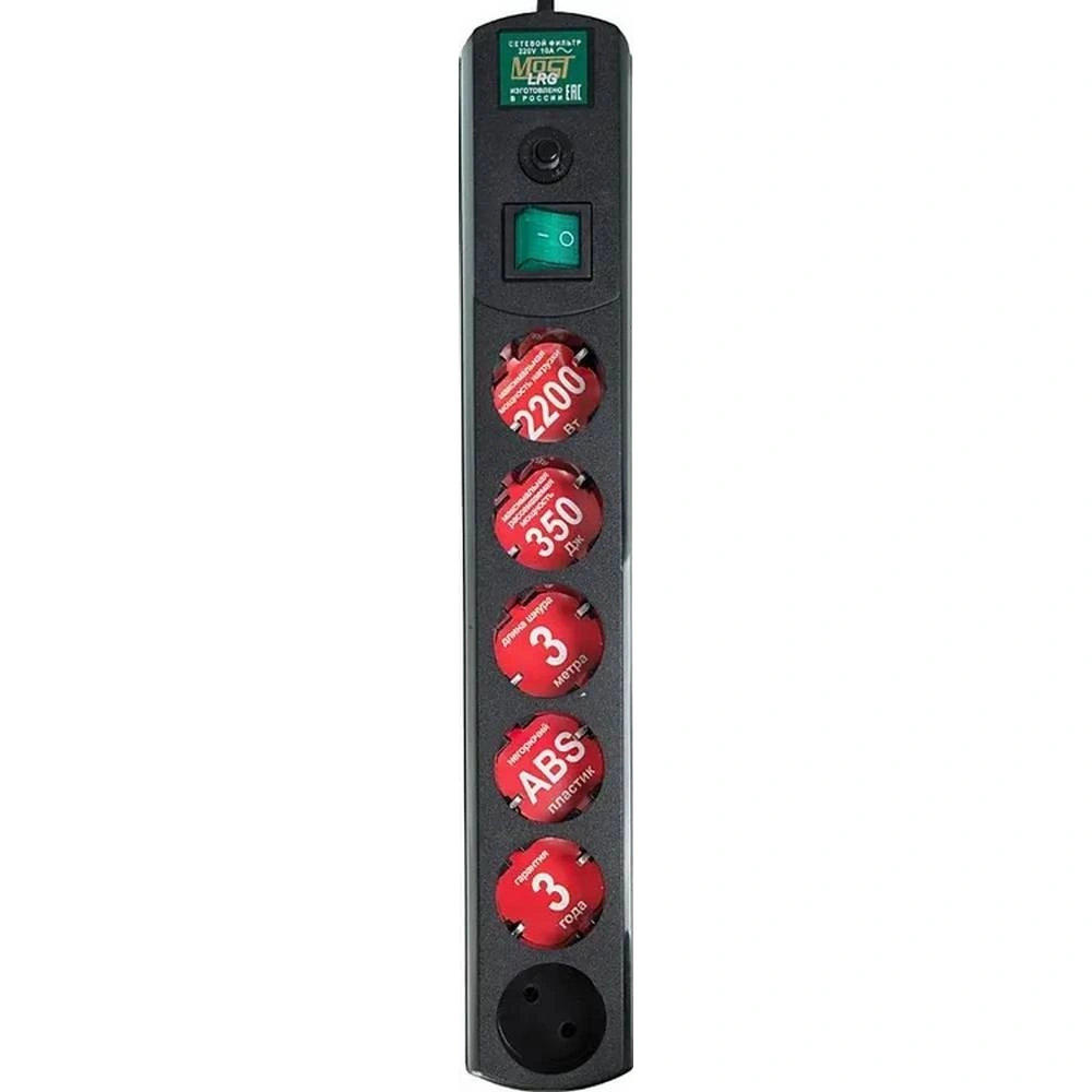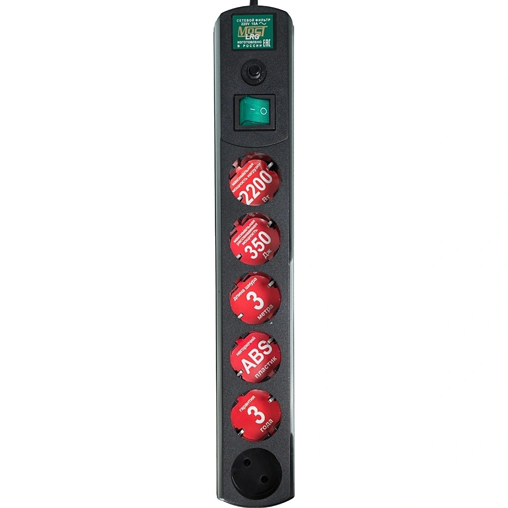Сетевой фильтр Most LRG 3м (6 розеток) черный в Санкт-Петербурге