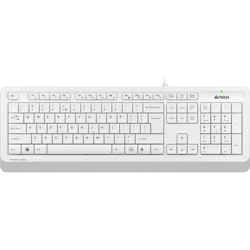 Клавиатура A4Tech представляет собой полноразмерное устройство ввода, созданное для комфортной работы как с персональными компьютерами, так и с ноутбуками. Она выполнена в стильной бело-серой цветовой гамме, что придаёт ей современный и элегантный внешний вид. Мембранная конструкция клавиш обеспечивает тихий и мягкий ход, что делает её идеальной для тех, кто ценит комфорт и тишину при наборе текста.