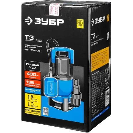 Описание товара Насос погружной дренажный Зубр Профессионал Т3 НПГ-Т3-400