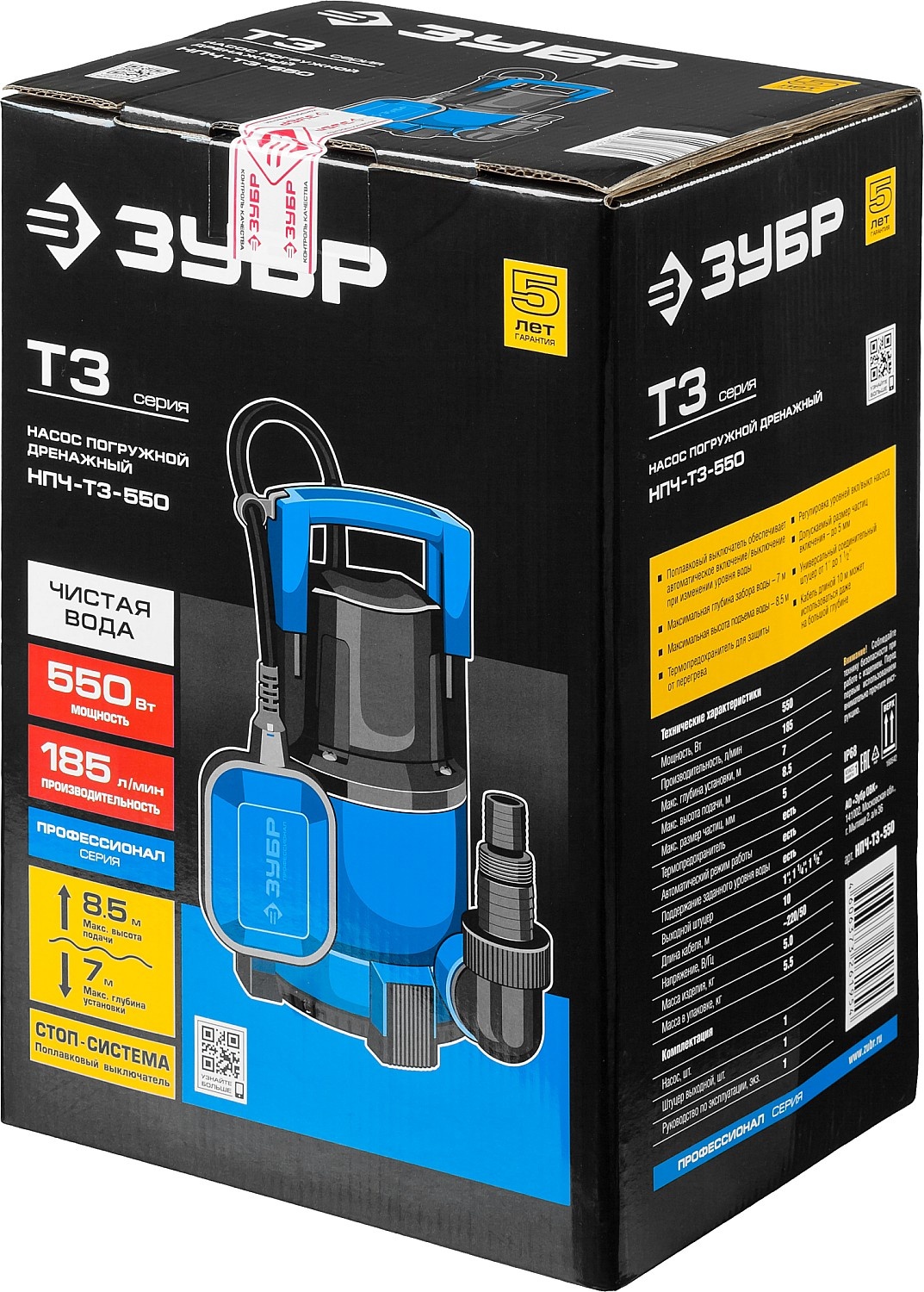 Описание товара Насос погружной дренажный Зубр Профессионал Т3 НПЧ-Т3-550