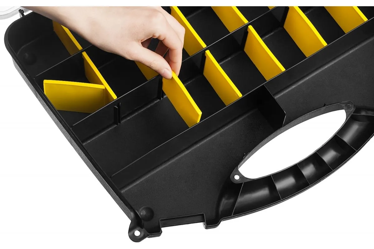 Органайзер Stayer Space-18 38038-18_z01 – компактное решение для использования как профессионалами, так и в быту. Конструкция имеет небольшие размеры и очень удобная, установлена ручка для комфортной переноски. Органайзер полностью выполнен из пластика, он прочный и не повреждается при эксплуатации.