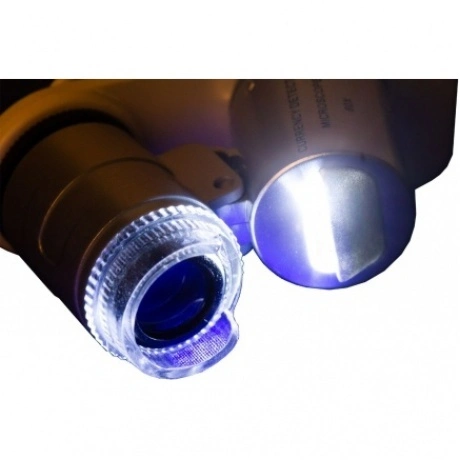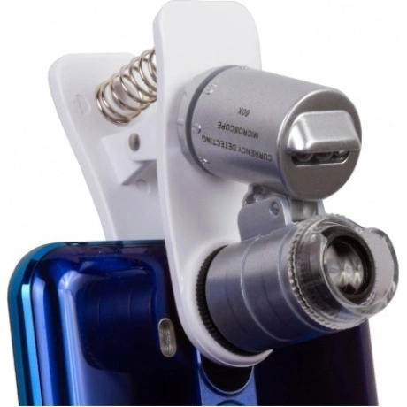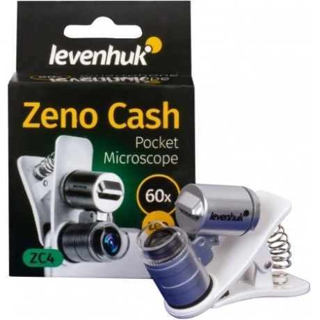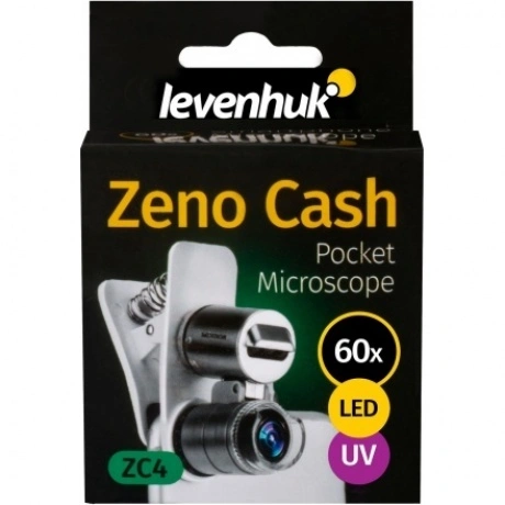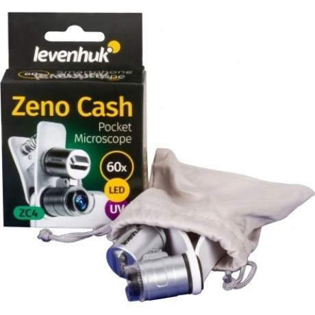 Levenhuk Zeno Cash ZC4 – карманная модель микроскопа, разработанная специально для проверки банкнот. Для этой цели прибор снабжен ультрафиолетовой подсветкой. Микроскоп пригодится бизнесмену, кассиру и любому человеку, совершающему покупки за наличные. Дополнительная подсветка из пары обычных светодиодов позволяет применять микроскоп для изучения разных объектов на увеличении в 60 крат – например, марок и других предметов коллекционирования. Одно из преимуществ модели Levenhuk Zeno Cash ZC4 – возможность совместного использования со смартфоном или планшетом. В конструкции предусмотрен специальный зажим для крепления к мобильному устройству. Объединив микроскоп с телефоном, вы сможете использовать его камеру для фото- и видеосъемки увеличенного изображения и фиксировать результаты наблюдений. Батарейки для питания подсветки включены в комплект поставки.