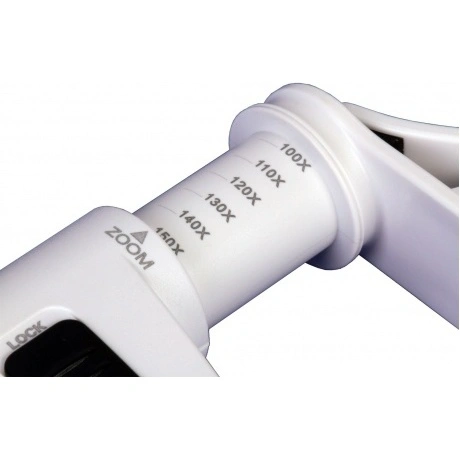 Levenhuk Zeno Cash ZC16 – это карманная модель микроскопа, предназначенная для изучения разных предметов под увеличением от 100 до 150 крат. Оптимальную кратность для каждого объекта наблюдений можно подобрать, плавно выдвигая окуляр из корпуса. Специальный блокиратор фиксирует окуляр на нужном уровне. Микроскоп можно взять с собой на природу для изучения минералов, растений, насекомых, ракушек и других объектов. Коллекционерам он пригодится для детального изучения поверхностей и поиска дефектов. Модель Levenhuk Zeno Cash ZC16 снабжена зажимом для установки на мобильные устройства. Это позволяет использовать камеру смартфона или планшета для фото- и видеосъемки с увеличением. Картинка выводится прямо на экран телефона. Для работы при недостаточном освещении в конструкции микроскопа предусмотрена подсветка – яркий светодиод. Для его работы требуются батарейки (не входят в комплект). Для настройки резкости используется барабан грубой фокусировки.