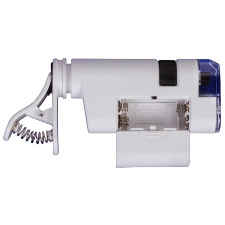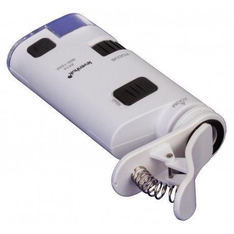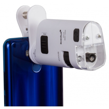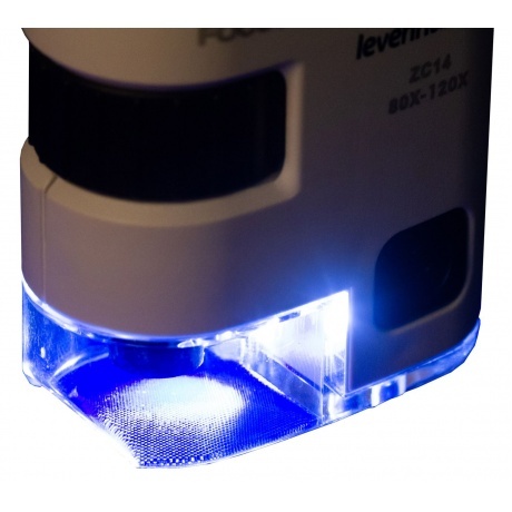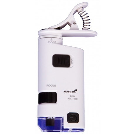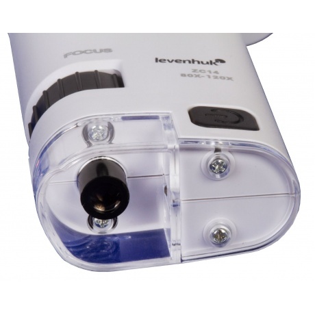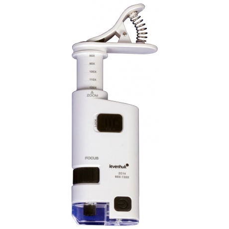 Микроскоп Levenhuk Zeno Cash ZC14 – это карманный увеличительный инструмент, кратность которого регулируется в диапазоне от 80 до 120 крат. Микроскоп без труда помещается в сумку или карман куртки, поэтому его можно захватить на дачу, в турпоход или путешествие. Прибор поможет рассмотреть под увеличением минералы и объекты живой природы. Коллекционерам он пригодится для изучения марок, монет и других предметов. Высокая кратность поможет обнаружить мельчайшие дефекты на поверхности разных изделий, в том числе ювелирных. Для смены увеличения микроскопа нужно выдвинуть или задвинуть его окуляр. В конструкции есть блокиратор для фиксации окуляра в удобном положении. За наведение резкости отвечает барабан грубой фокусировки. Установленная в микроскопе светодиодная подсветка работает от батареек (нет в комплекте). Вести наблюдения можно независимо от электросети и уровня освещенности. Важная особенность прибора – возможность крепления к камере смартфона. Вы сможете наблюдать приближенное в 120 раз изображение прямо на дисплее телефона, а также делать снимки и записывать видео.