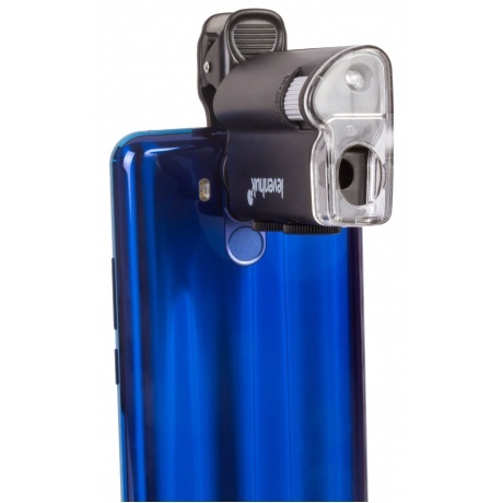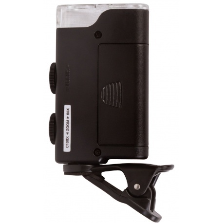 Levenhuk Zeno Cash ZC10 – это карманный микроскоп со сменным увеличением, предназначенный для проверки денежных знаков. В приборе установлен зум-объектив, поэтому проверять купюры можно будет под разными увеличениями в диапазоне 60–100 крат. Это помогает осуществить проверку максимально точно и не стать объектом мошенничества. Степень приближения плавно регулируется колесиком на корпусе микроскопа. Благодаря легкому компактному корпусу из пластика прибор можно захватить с собой и на рынок, и в магазин, и в деловой перелет. Проверка денег осуществляется при помощи ультрафиолетовой подсветки. В дополнение к ней микроскоп Levenhuk Zeno Cash ZC10 оборудован подсветкой из одного классического светодиода – прибор можно использовать как мощную лупу с изменяемой кратностью. Подсветка работает от батареек (не входят в комплект). Микроскоп может быть зафиксирован на смартфоне или плашнете для фото- и видеосъемки. Увеличенное изображение будет выводиться прямо на экран гаджета.