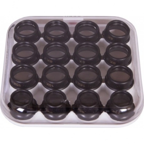 16 сменных линз (8 комплектов по 2 линзы), подсветка: 2 светодиода