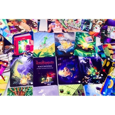 Серия занимательных настольных игр Имаджинариум от компании Cosmodrome Games пополнилась новым дополнением под названием Кассиопея. Тематика этого набора дополнительных карточек связана с космосом, фантазией и детством. В комплект входит 98 новых карт, разработанных для популярной игры в ассоциации. Данные картинки разработаны почти 20 авторами и получились весьма разнообразными, добрыми и очень позитивными. Это дополнение можно присоединить к базовому набору, чтобы разнообразить игру и развивать собственное воображение. Игра подходит для семейного досуга и для больших компаний.