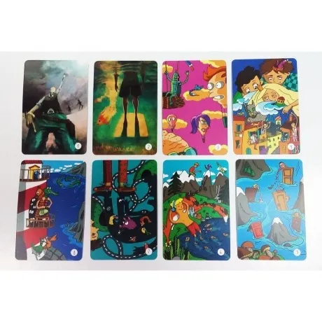 Прикольные картинки. Мне больше понравились сами иллюстрации в колоде Сумчатый. Здесь очень много каких-то ссср-ровских тематик, мрачновато на мой взгляд и не современно. Кого гложет ностальгия - им зайдет.