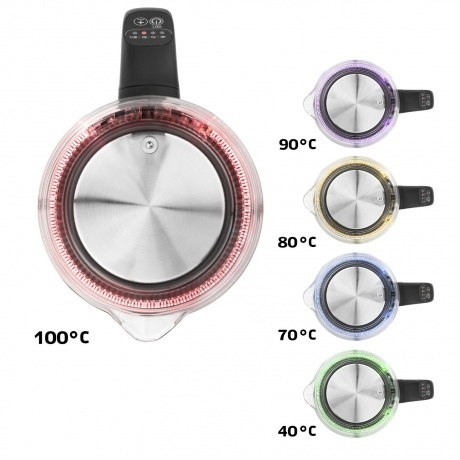 Чайник Kitfort КТ-656 снабжён электронной системой управления. С его помощью вы можете как вскипятить воду, так и нагреть её до 40, 70, 80 или 90 градусов. Это позволяет заваривать разные виды чая и кофе в идеальных условиях, а также готовить детское питание при оптимальной температуре.
