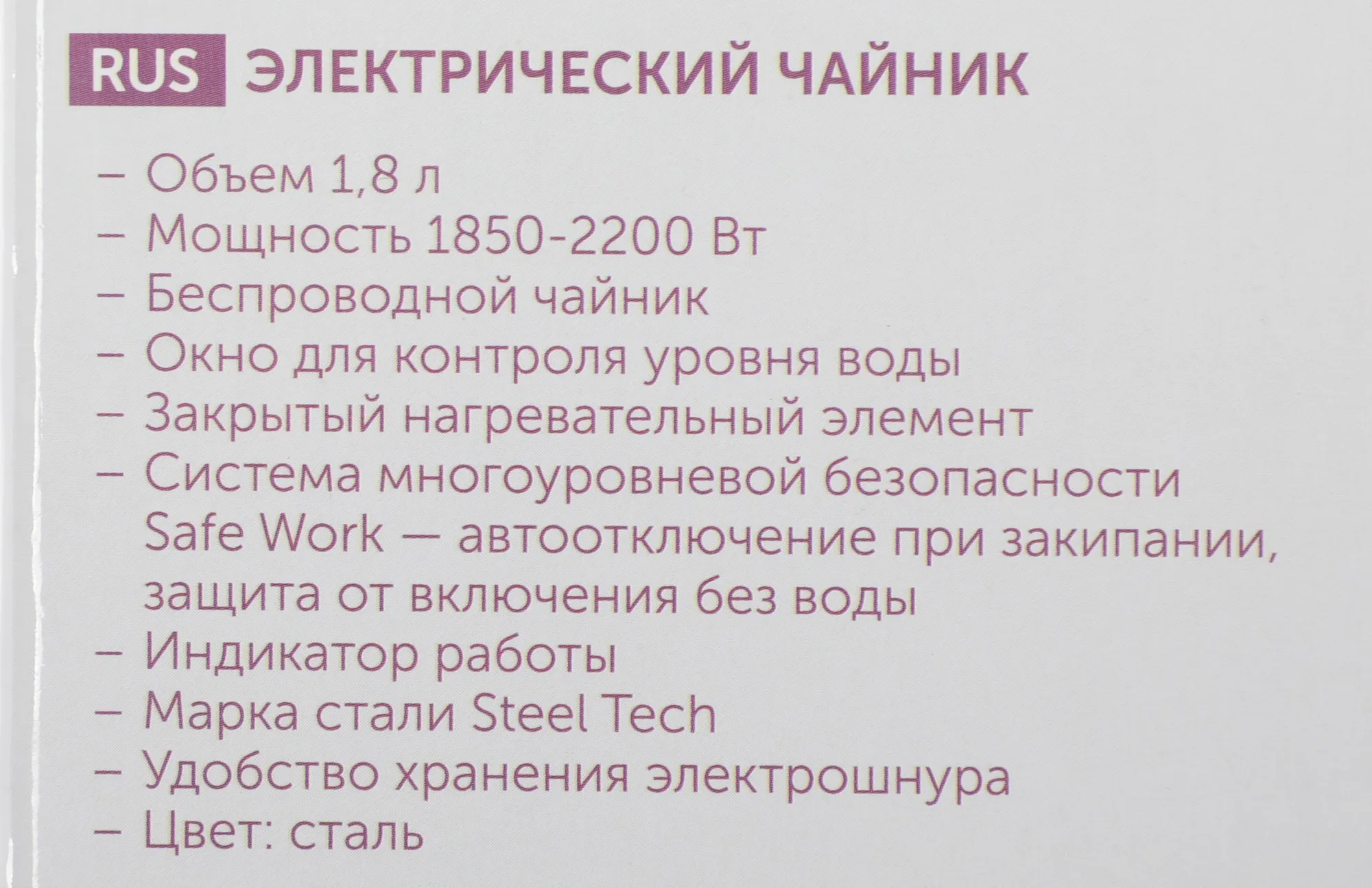 Описание товара Чайник электрический Scarlett SC-EK21S88 сталь