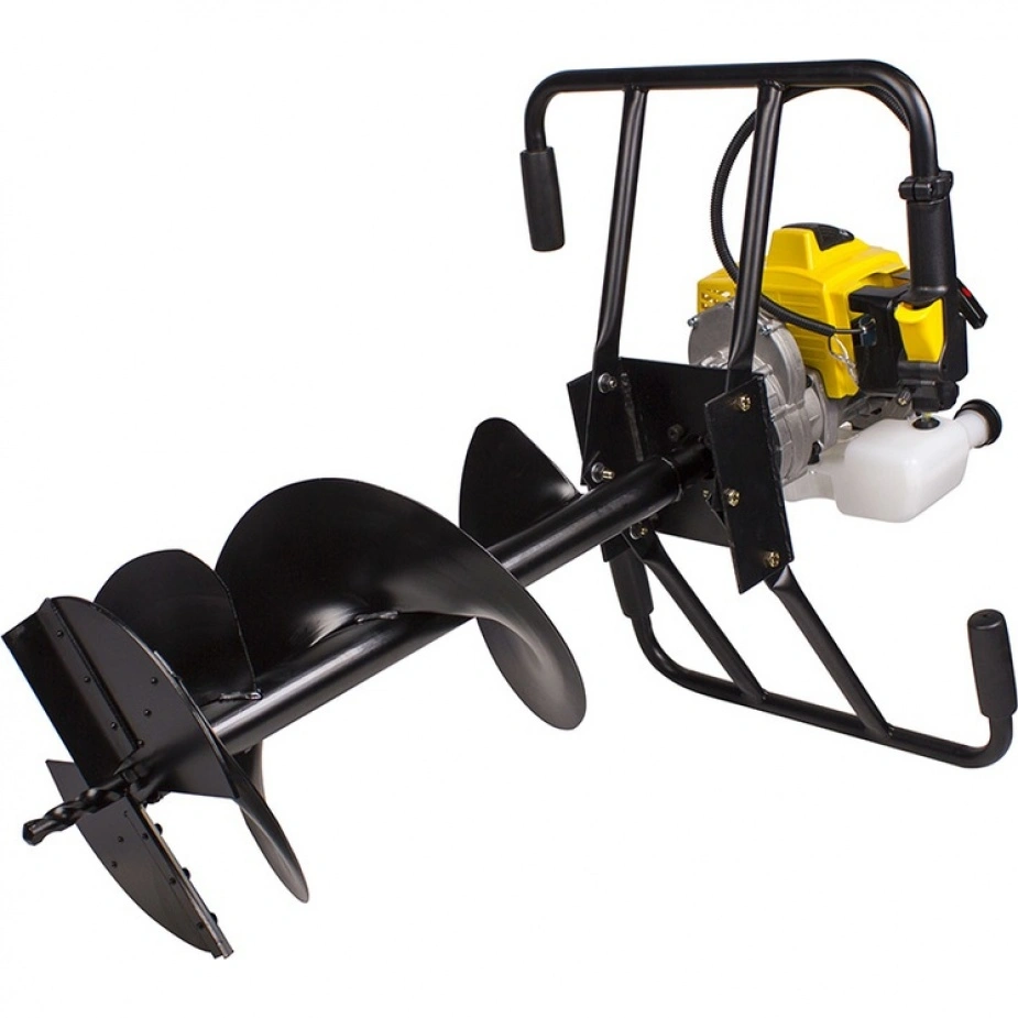 Мотобур Champion AG364, поставляемый без шнека, используется для бурения отверстий диаметром до 300 мм в грунте или во льду. Применение этому устройству найдется не только на стройке или в сельском хозяйстве, но и на зимней рыбалке. Благодаря мощности двигателя, равной 3 лошадиным силам, модель эффективно справляется с твердым и мерзлым грунтом. Даже при серьезных нагрузках буровая установка работает стабильно, развивая большие обороты. Система зажигания отрегулирована для легкого запуска мотора, а благодаря эффективному воздушному охлаждению устройство способно функционировать длительное время без перерывов. Бензобур Champion AG364 оснащен прочным редуктором, который позволяет использовать технику на плотном грунте. В конструкции модели присутствуют две рукоятки, которые позволят использовать устройство двум операторам. Также для более комфортного использования мотобура на его рукоятках располагаются элементы управления.
