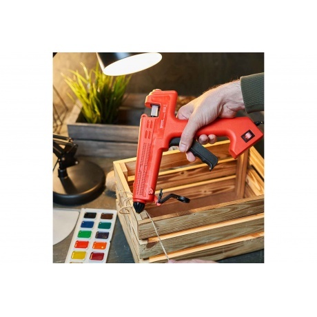 Пистолет клеевой Rexant 12-0119 применяется для склеивания различных материалов между собой. Заправляется клеевым стержнем диаметром 11 мм. Сопло обеспечивает точное и аккуратное нанесение клея. Корпус выполнен из ударопрочной пластмассы, благодаря чему устойчив к механическим повреждениям. Наличие скобы позволяет надежно установить инструмент в нерабочем положении.
