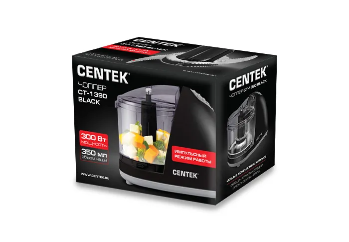 Измельчитель Centek CT-1390 привлекает внимание стильным черно-белый дизайном. Прибор обладает одной скоростью и работает при мощности 300 Вт. Предусматривается наличие емкости на 350 мл и универсального ножа для измельчения продуктов.