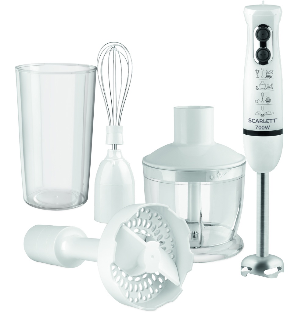 Блендер Scarlett SC-HB42M33 это устройство 4 в 1: подходит для измельчения, взбивания, смешивания, приготовления картофельного пюре. Две скорости работы, эргономичная ручка обеспечивают удобное управление одной рукой. Двух скоростей достаточно для переработки как твердых, так и мягких продуктов. Специальная насадка для картофельного пюре с двумя широкими лопастями приготовит идеальное воздушное пюре без комочков.