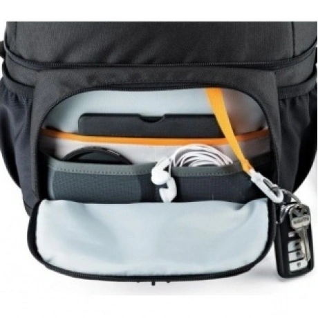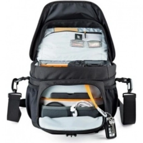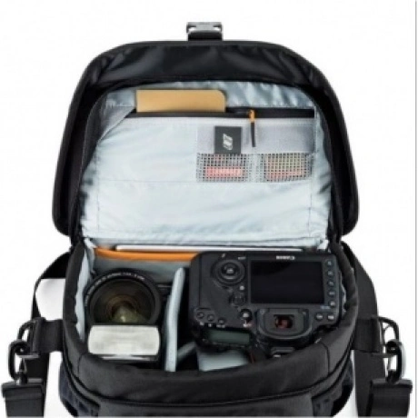Продуманный дизайн сумок с передвижными перегородками позволяет эффективно моделировать внутреннее пространство, обеспечивая плотное прилегание камеры и объективов, тем самым надежно предохраняя технику от механических повреждений. Дополнительные кармашки для карт памяти и внешние карманы для других мелких вещей позволяют удобно размещать необходимые аксессуары. Быстрый доступ к камере осуществляется через верхнюю крышку. Эргономичный плечевой ремень, несоскальзывающий с плеча обеспечивает комфорт при транспортировке и при съемке. Сумки серии Lowepro Nova надежно защищены от неблагоприятных погодных условий: водоотталкивающий прочный на разрыв внешний материал и влагозащитные молнии предохраняют чувствительную фототехнику от пыли и влаги, а вшитый всепогодный чехол AW (All Weather Cover) защитит оборудование даже под проливным дождем.