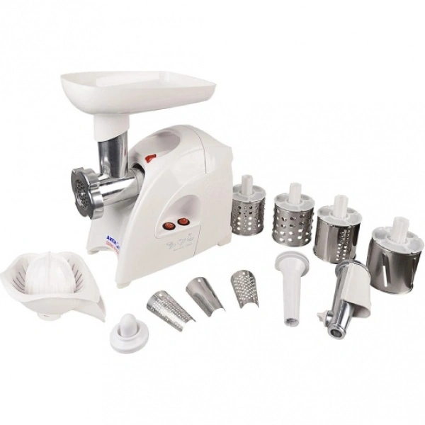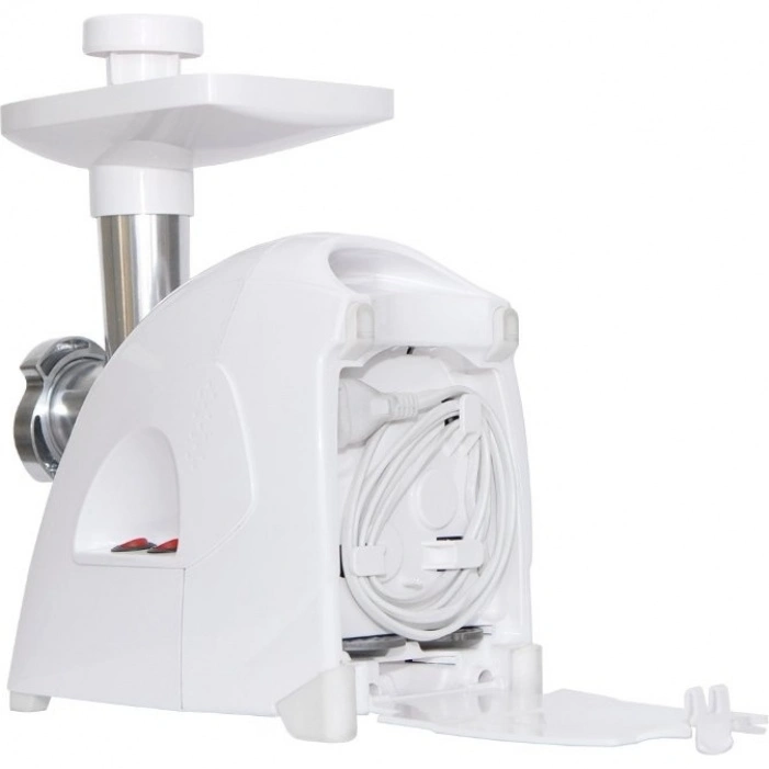 Электрическая мясорубка Аксион М 41.02 мощностью 1700 Вт позволят изготовить до 2 кг мясного фарша в минуту. Экран для защиты от брызг собственной разработки поможет сохранить чистоту на кухне, а соковыжималка для цитрусовых гарантирует сочное начало дня. Шнур, нож и решетки мясорубки размещаются в отсеке с откидной крышкой, что гарантирует удобное хранение как в горизонтальном, так и в вертикальном положении.