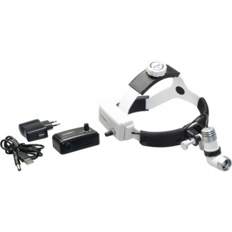 Освещенность - 20 000 ЛК (Люкс) +-10% на расстоянии 150 мм. Цветовая температура ССТ - 8 300 К +- 500K. Индекс цветопередачи CRI=76Ra. Размер светового пятна на расстоянии 150 мм - регулируется от 7 мм до 41 мм. Угол наклона - полная регулировка по выбору пользователя. Время работы от аккумулятора - 4 часа. Время полной зарядки - 3 часа. В комплекте два аккумулятора. Масса с аккумулятором - 400 г. Источник света - светодиод 3В. Размер головного обруча плавно регулируется. Комплектность: 1. Головной обруч - 1 шт. 2. Осветитель - 1 шт. - на головном обруче. 3. Основной блок питания (белый) - 1 шт. - на головном обруче. 4. Запасной блок питания (черный) - 1 шт. 5. Сетевой адаптер с кабелем - 1 шт. 6. Жесткий кейс - 1 шт. 7. Руководство по эксплуатации - 1 шт. 8. Гарантийный талон - 1 шт.