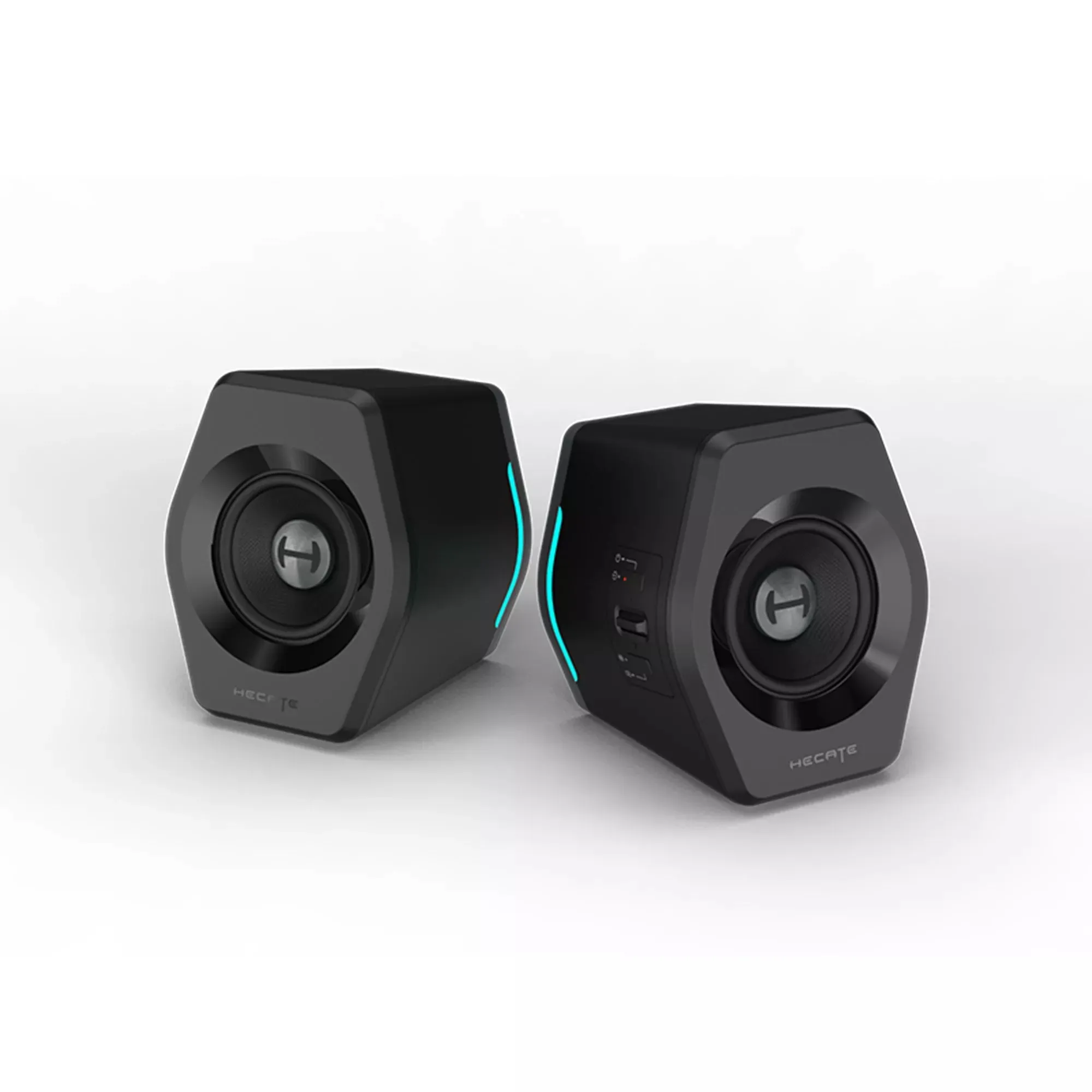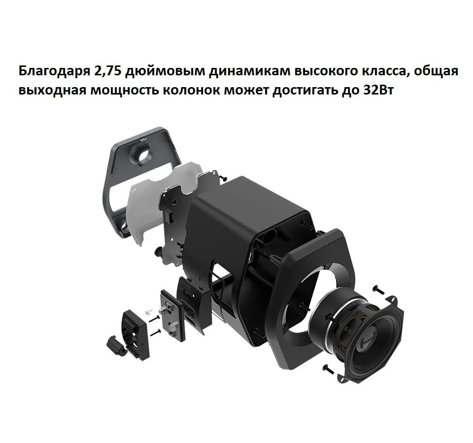 Bluetooth игровые колонки. Bluetooth v4.2. Пиковая выходная мощность 32 Вт. Предустановленный эквалайзер с 3 режимами звучания. Встроенная RGB подсветка. Благодаря 2,75 дюймовым динамикам высокого класса, общая выходная мощность колонок может достигать до 32Вт. Качественный звук обеспечивает профессиональный звуковой чип, а встроенный эквалайзер, с тремя предустановленными звуковыми режимами: «игры, фильмы, музыка», позволит насладится разнообразным звучанием. Встроенная RGB-подсветка с 12-ти режимами освещения.