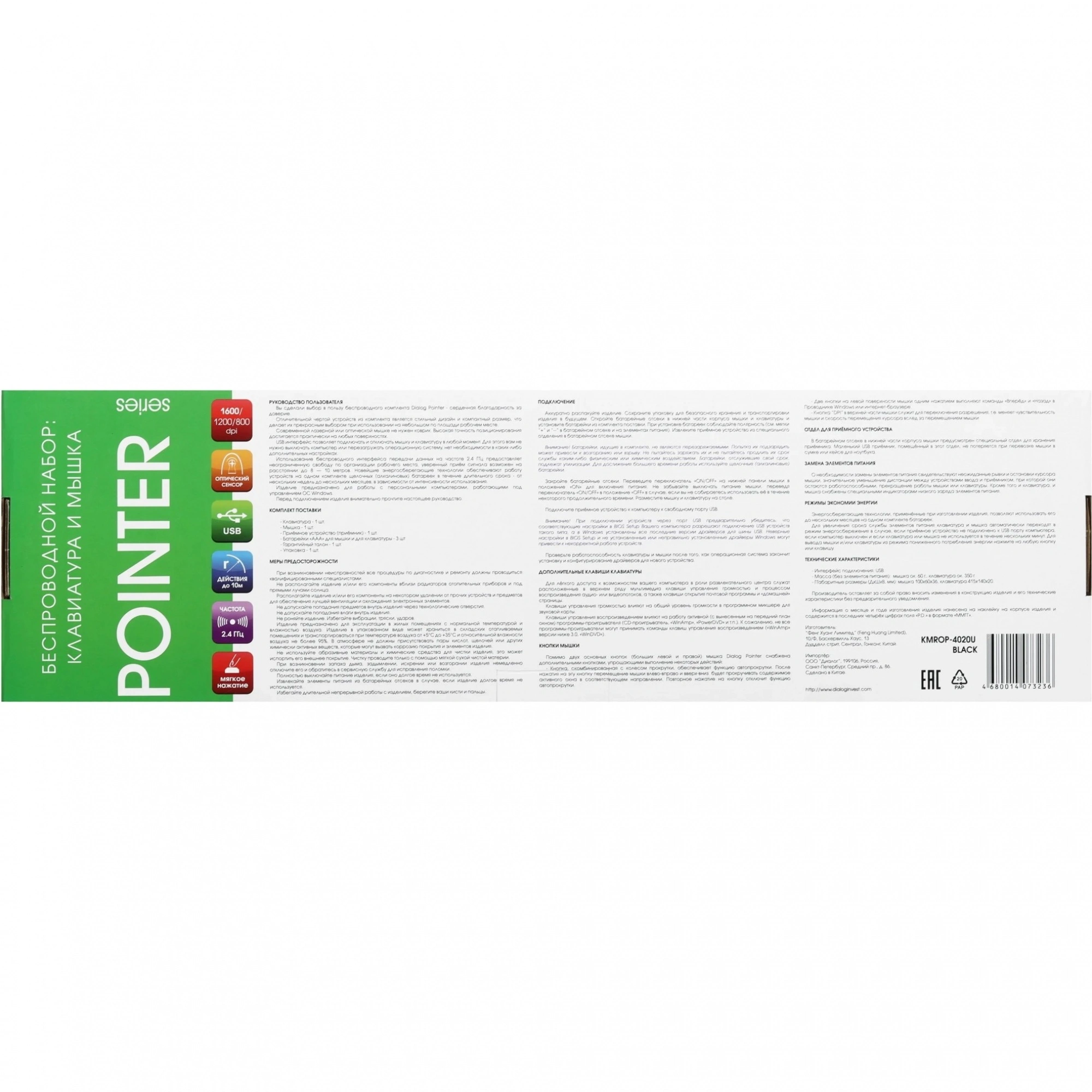 Dialog KMROP-4020U Black USB это комплект беспроводной клавиатуры и мыши. Отличительной чертой устройств является стильный дизайн и компактный размер, что делает их прекрасным выбором при использовании на небольшом по площади рабочем месте. Современной оптической мышке не нужен коврик. Высокая точность позиционирования достигается практически на любых поверхностях. USB интерфейс позволяет подключать и отключать мышку и клавиатуру в любой момент.