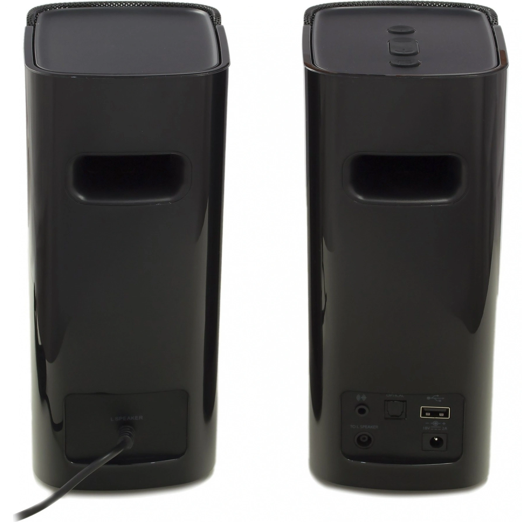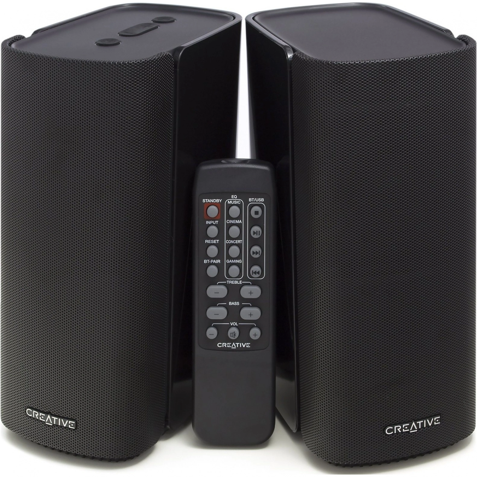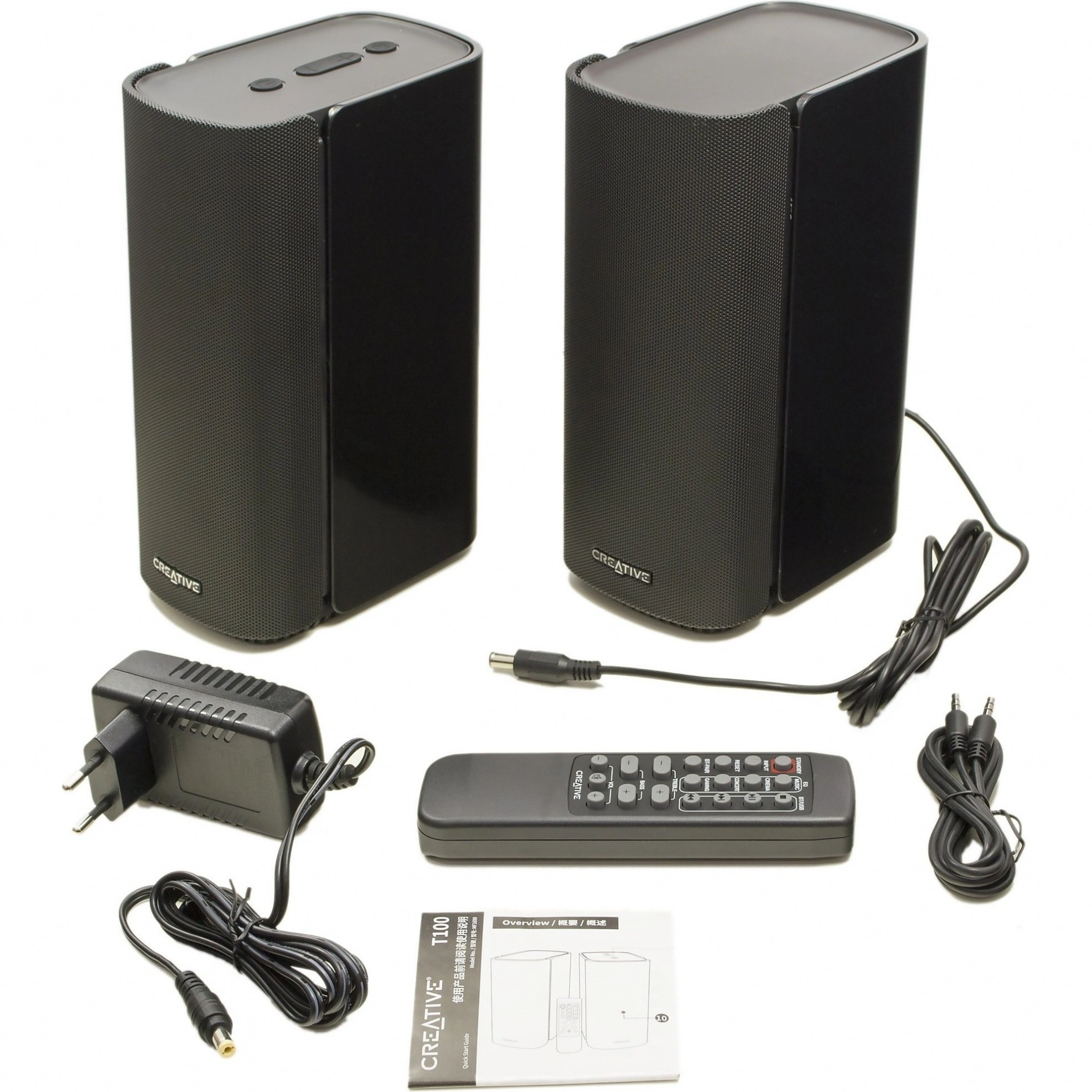 Стационарные колонки Bluetooth CREATIVE T100 позволят насладиться любимыми песнями в отличном качестве. Они предназначены для ноутбука и подключаются посредством Bluetooth. При необходимости подключения проводным способом, имеются стерео-вход AUX INPUT и цифровой оптический вход, который более устойчив к всевозможным помехам. Также имеется порт USB. Регуляторы находятся на верхней панели, а также, для удобства пользователя, имеется пульт ДУ. Питание колонок осуществляется от сети.