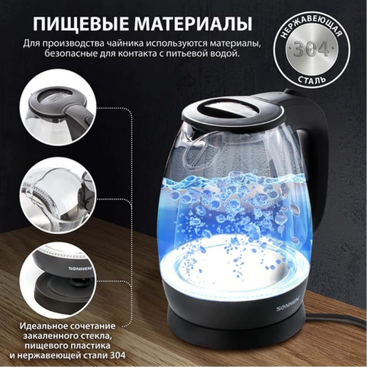 Отзывы о товаре Чайник электрический Sonnen KT-1786, 1,7л, 2200Вт, стекло