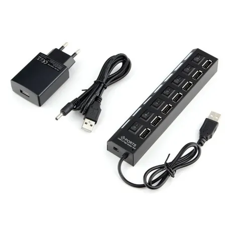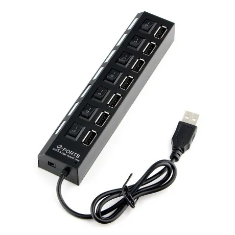 USB-концентратор профессионального уровня. Встроенная защита от перегрузок. Выключатель на каждый порт. Световая индикация. Адаптер питания в комплекте. 7 портов
