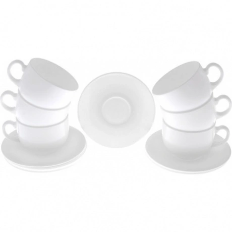 Чайный набор LUMINARC ЭССЕНС изготовлен из высококачественного ударопрочного стекла. Безупречная белизна опалового стекла, отсутствие рисунка позволяет отнести чайный набор к профессиональной посуде. Такой сервиз можно вписать практически в любую сервировку. Недорогой и практичный, может использоваться для ежедневного чаепития. Можно использовать в микроволновых печах и мыть в посудомоечных машинах. Сервиз рассчитан на 6 персон и включает 12 предметов: чашка 220 мл - 6 шт, блюдце - 6 шт.