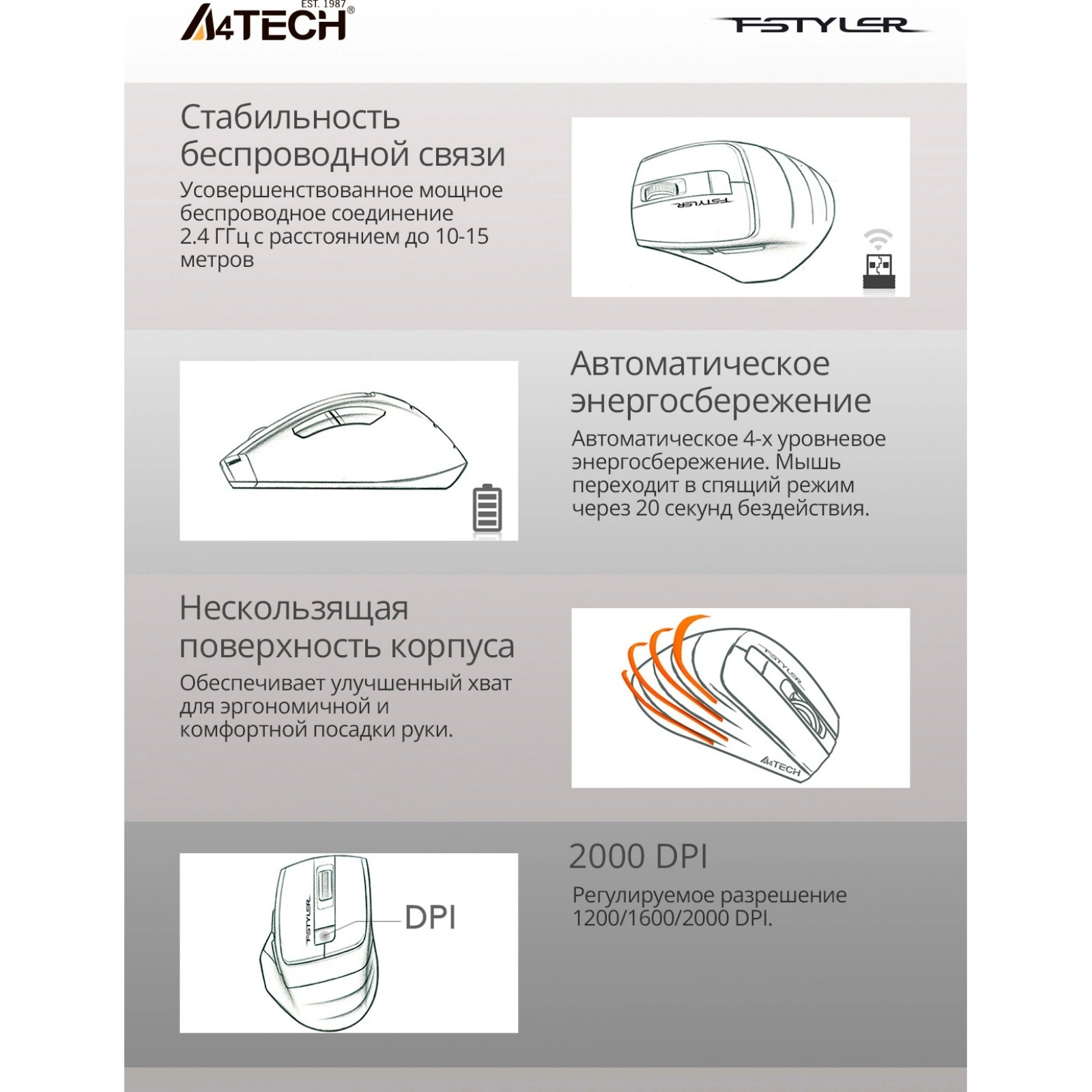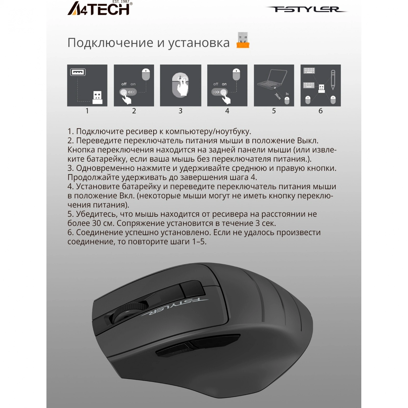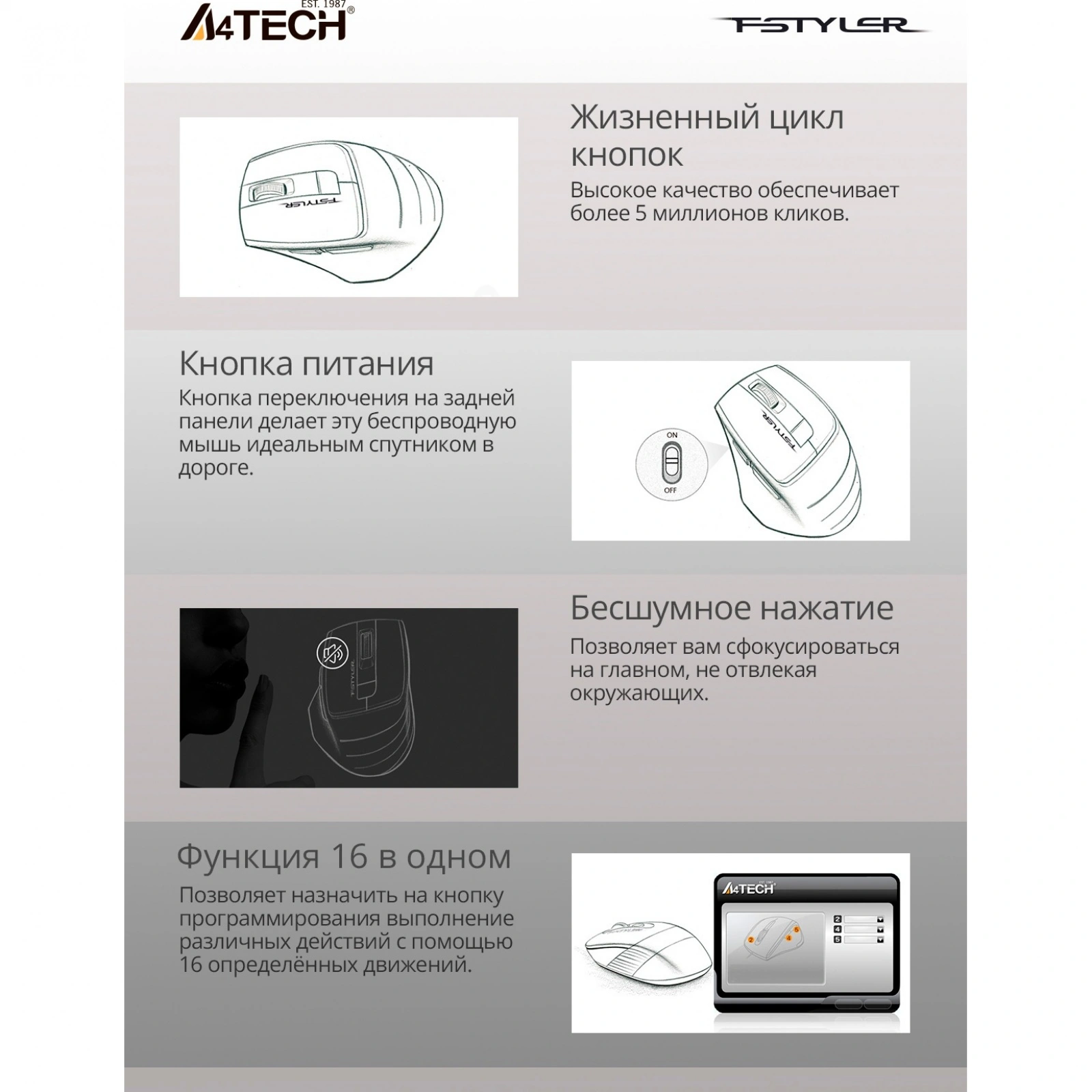 Отзывы о товаре Мышь A4Tech Fstyler FG30S серый silent беспроводная USB (6but)