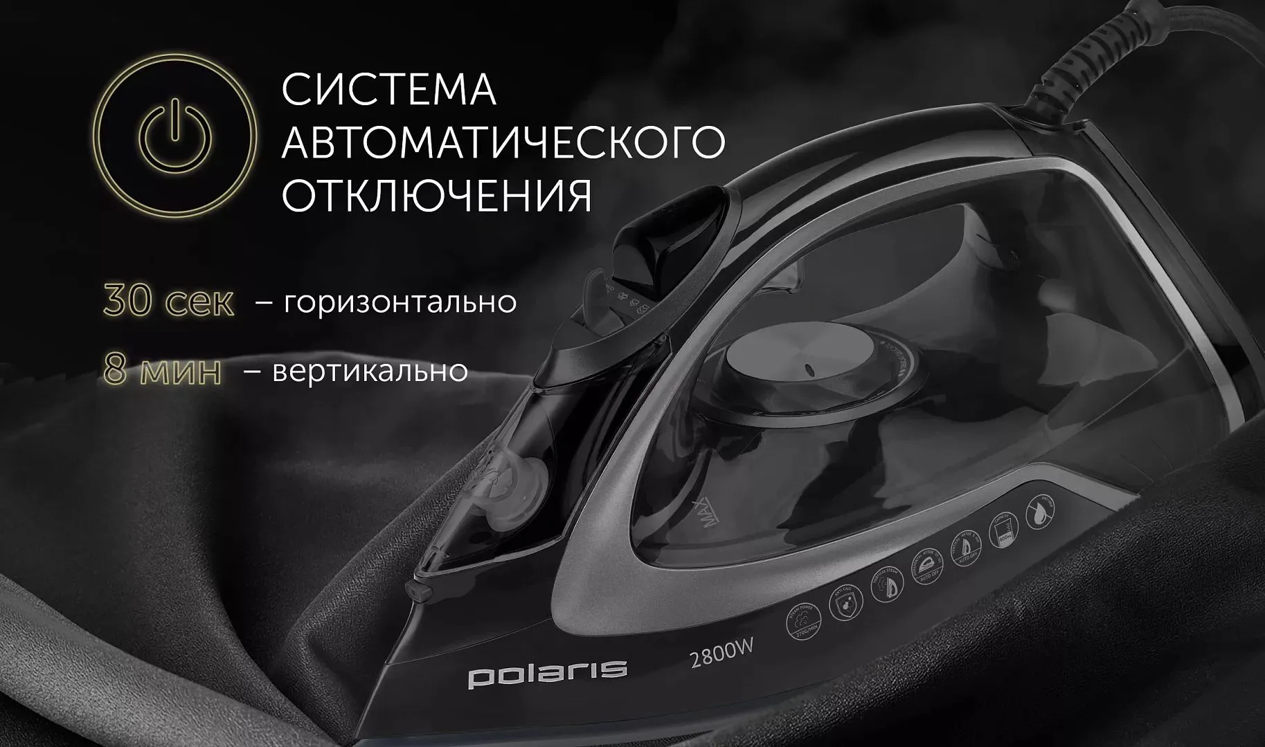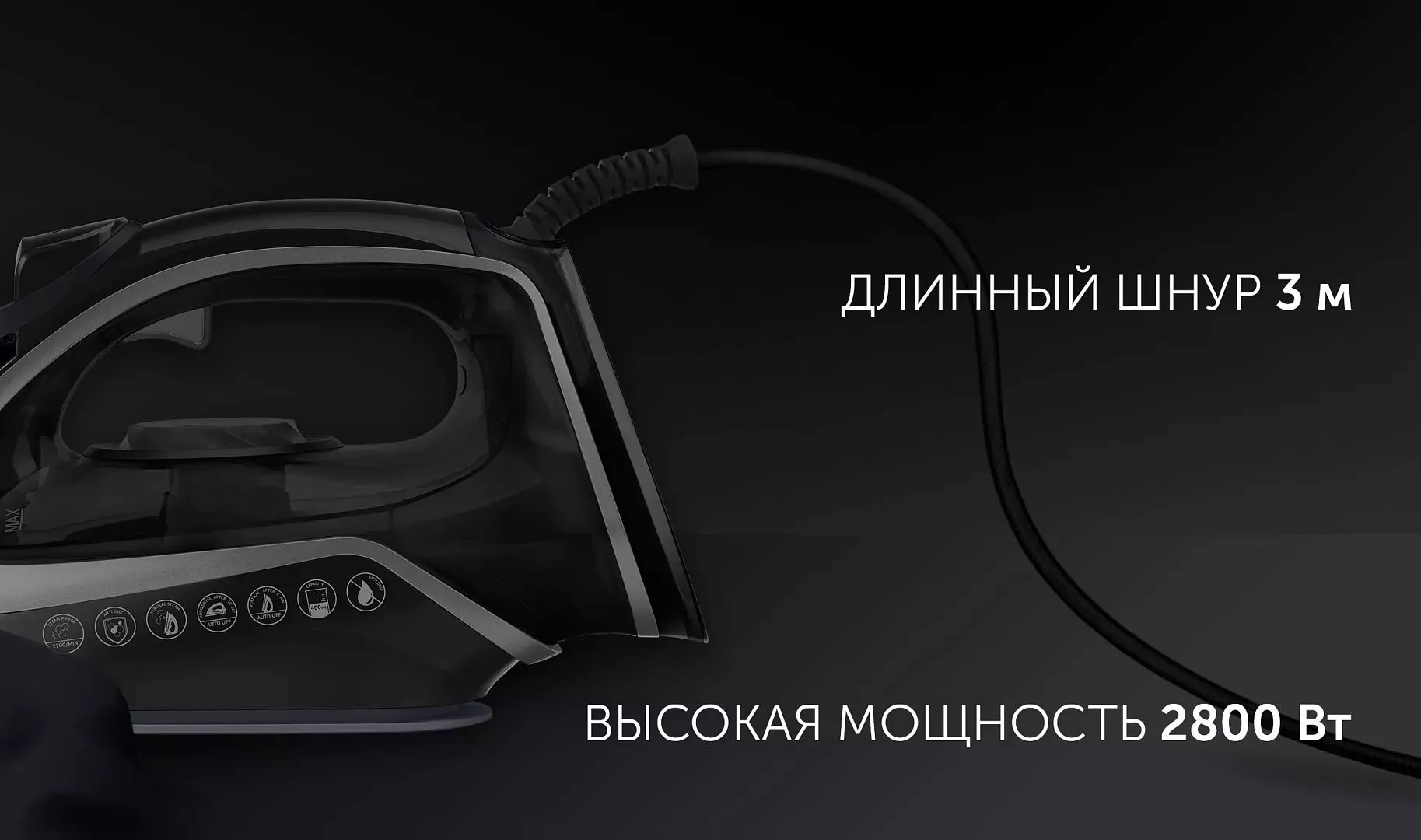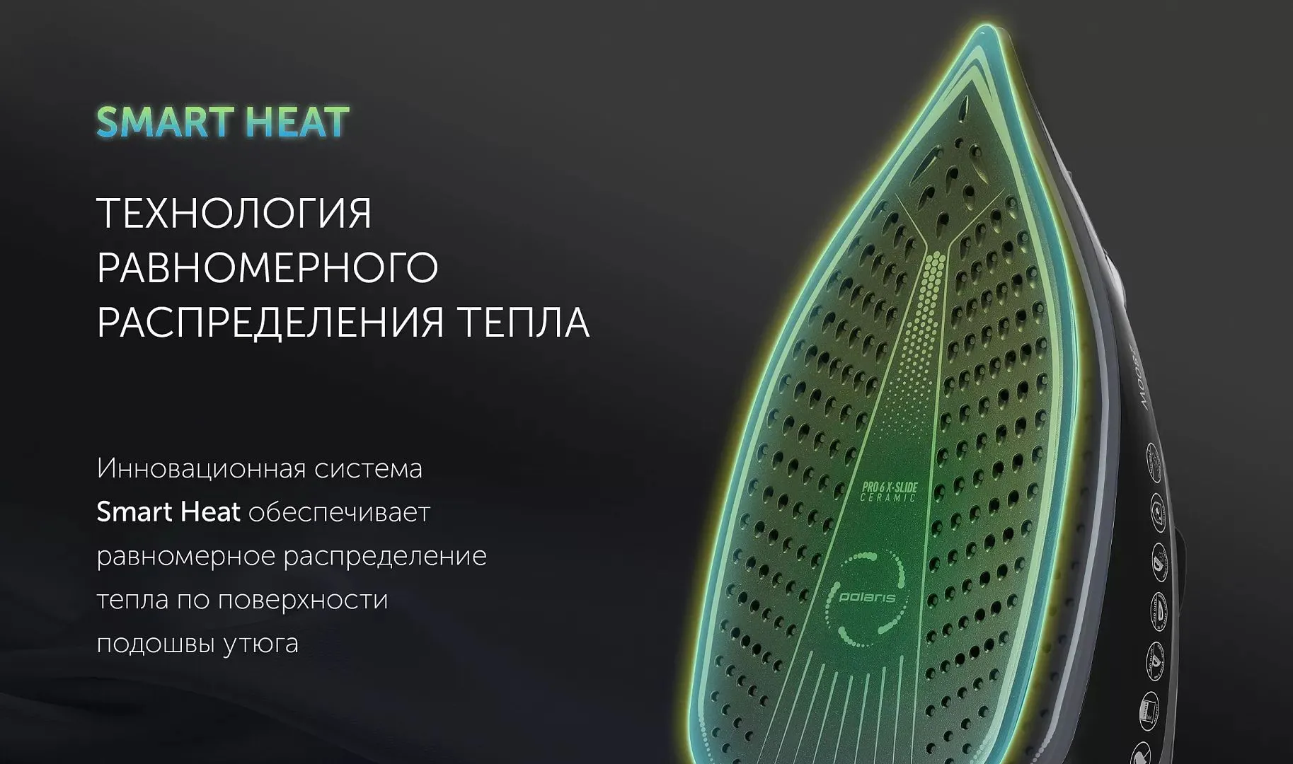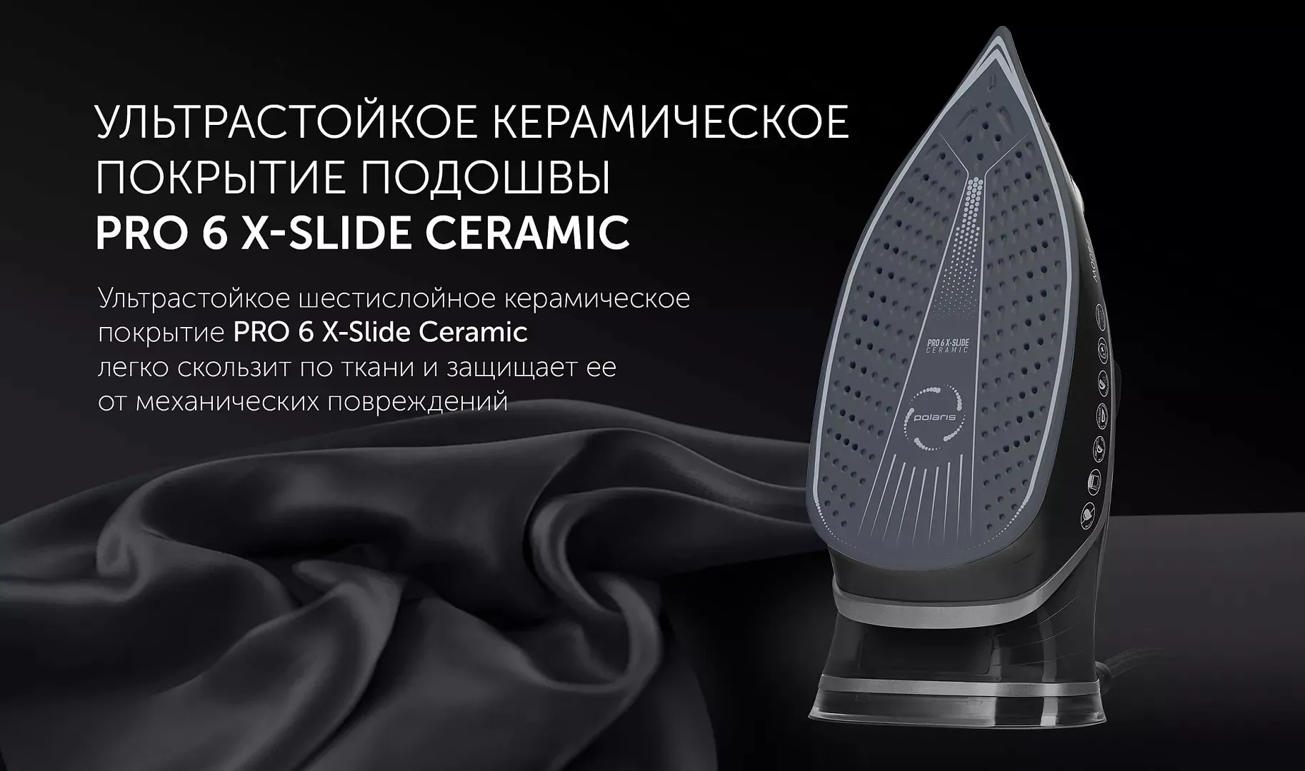Технология равномерного распределения тепла по подошве утюга. Ультрастойкое керамическое покрытие PRO 6 X-Slide Ceramic. Система автоматического отключения.
