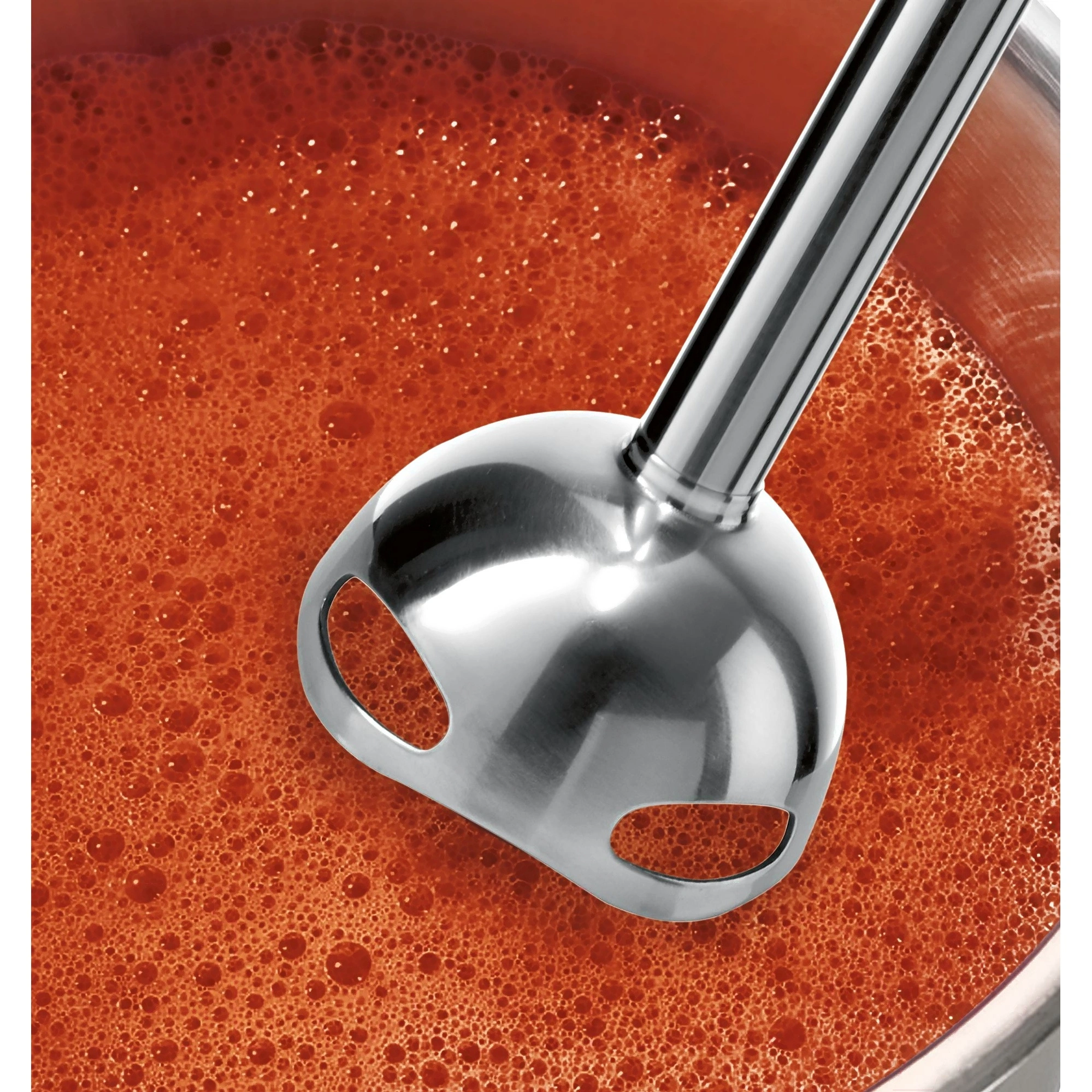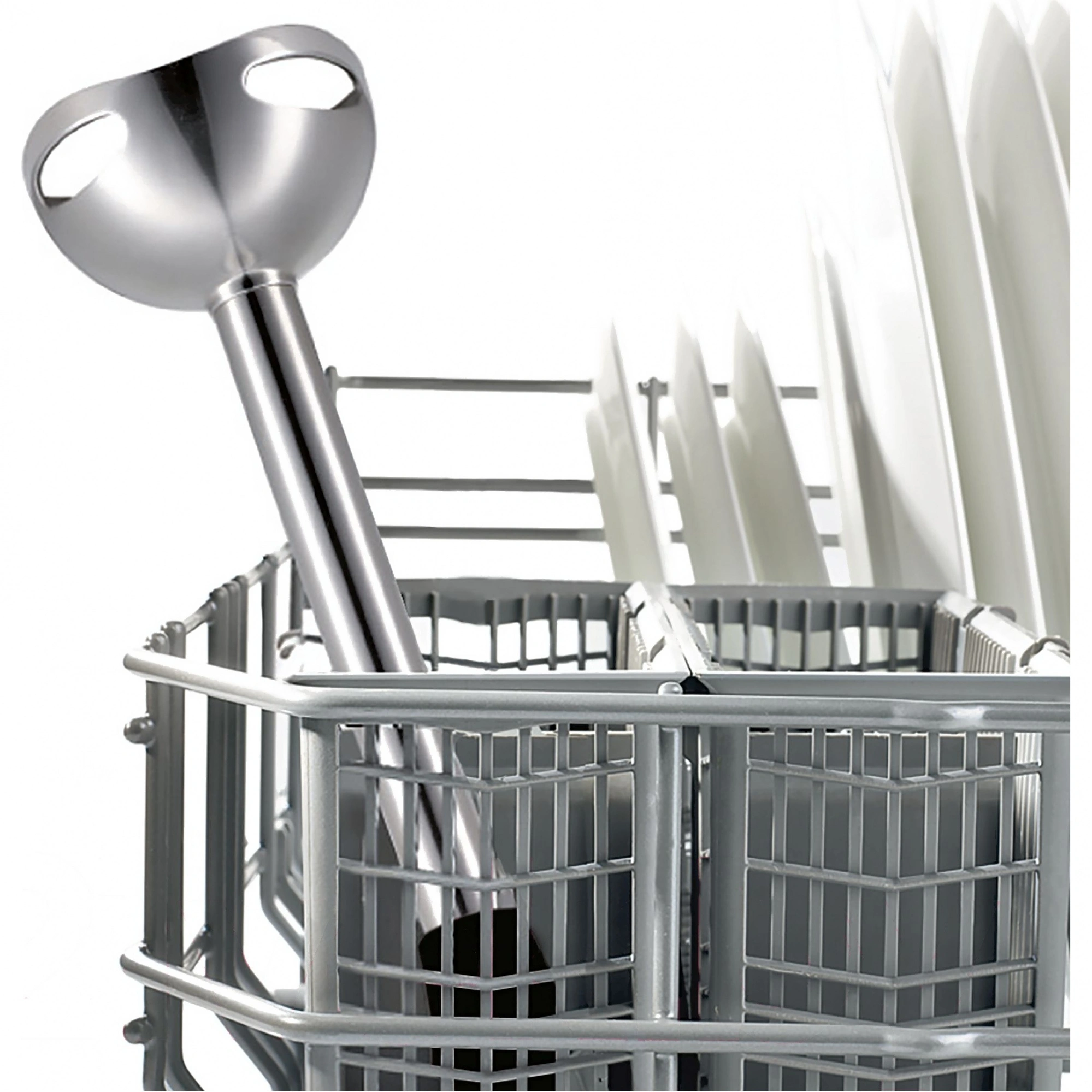 Погружная часть блендера из высококачественной нержавеющей стали: не имеет вкуса и запаха, безопасна для мытья в посудомоечной машине.