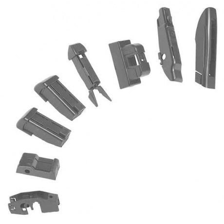 Две легированные пружины из нержавеющей стали, расположенные параллельно, обеспечивают плотное равномерное прилегание щетки к стеклу. Конструкция узла крепления адаптера исключает люфты, выполнена из оцинкованной стали, окрашенной специальным износостойким лакокрасочным составом. Чистящее лезвие щетки изготовлено из высококачественной натуральной резины, покрытой горячим тефлоном, что обеспечивает идеальную работу щетки, её повышенную износоустойчивость и плавное скольжение. Уникальное покрытие чистящего лезвия сохраняет свою эластичность при температурах от — 40 С до + 80 С, что обеспечивает качественное всесезонное использование щетки во всех климатических зонах РФ и СНГ.