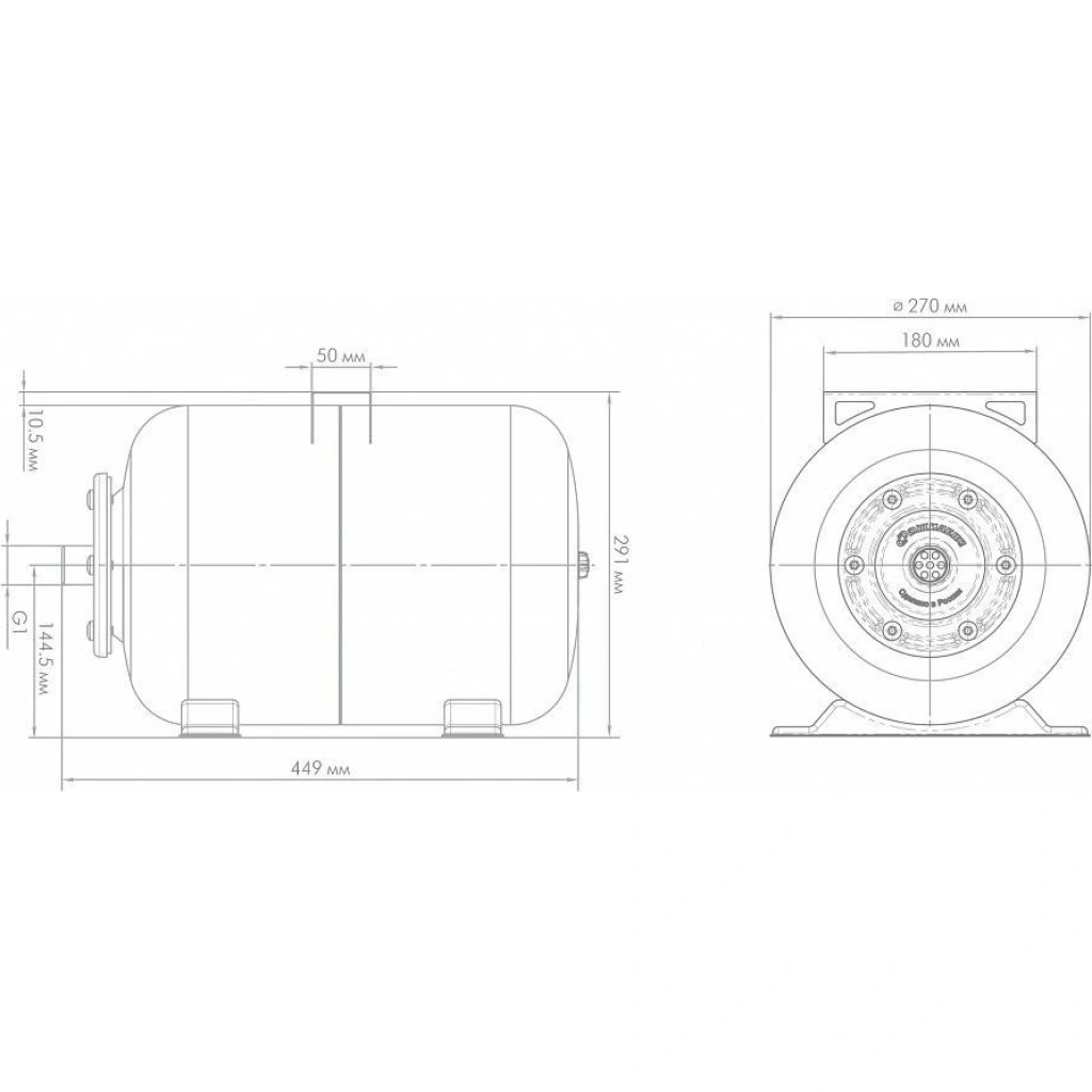 Гидроаккумулятор предохраняет насос от частого включения, что способствует увеличению ресурса насоса. Снижает вероятность появления гидроудара в системе. При отключении напряжения в сети выдает накопленный запас воды. Корпус из высококачественной стали. Комбинированный фланец. Краска с защитой от ультрафиолетовых лучей. Воздушный клапан для контроля давления воздуха. Универсальная площадка для крепления насоса. Горизонтальная компоновка.