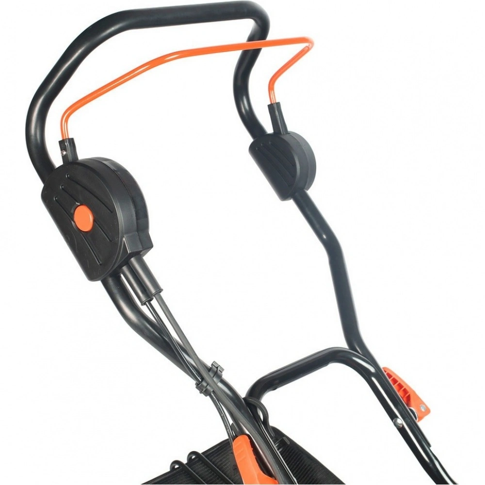 Хотя газонокосилка не является самоходной, легкость и маневренность конструкции делают её удобной в управлении. Электрическое питание от сети обеспечивает стабильную и мощную работу всего устройства. В комплектацию входит травосборник, что делает эту модель полностью готовой к эксплуатации сразу после покупки.